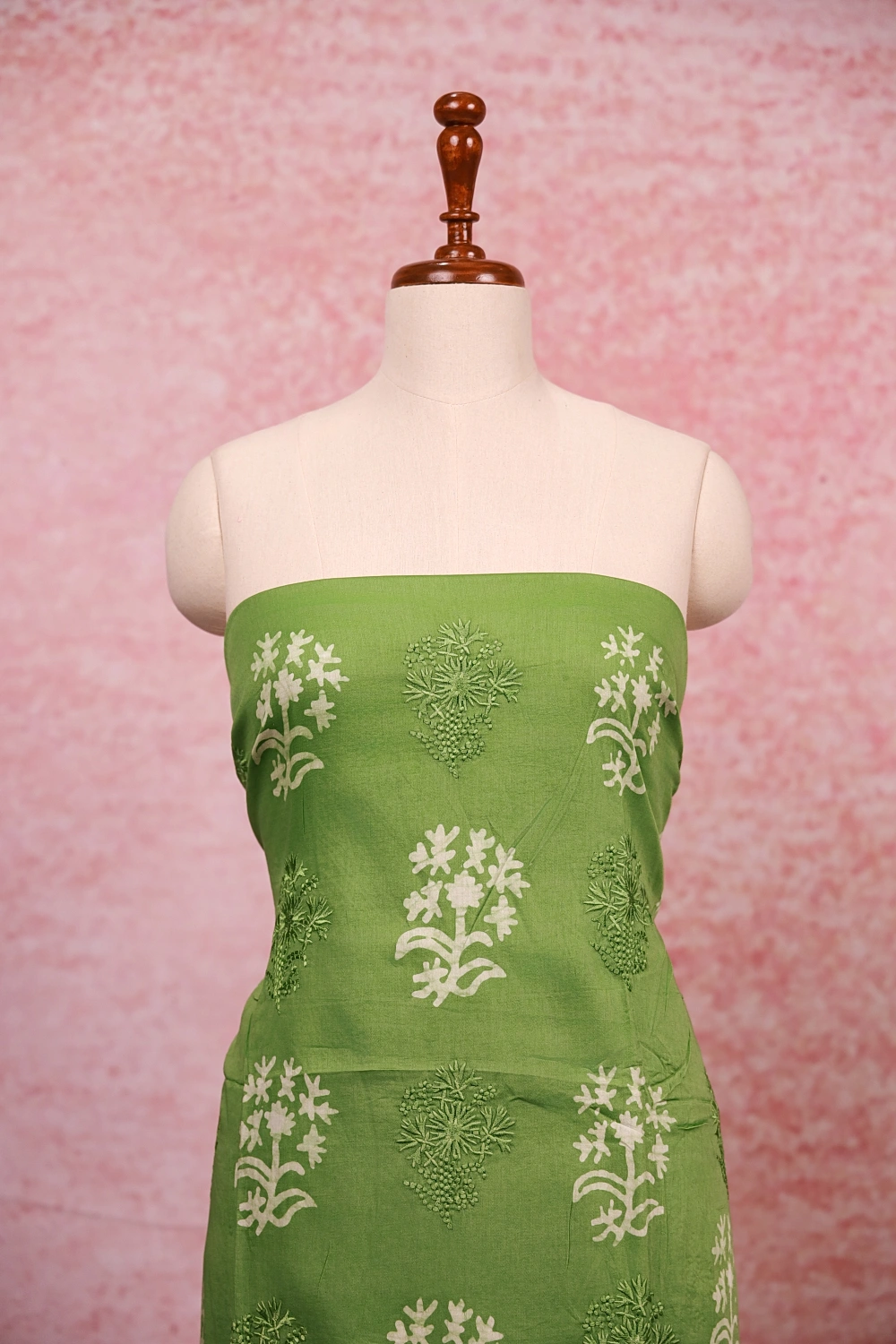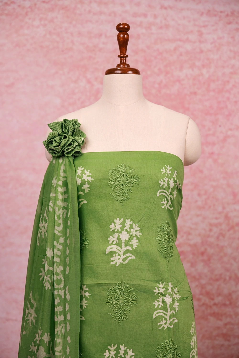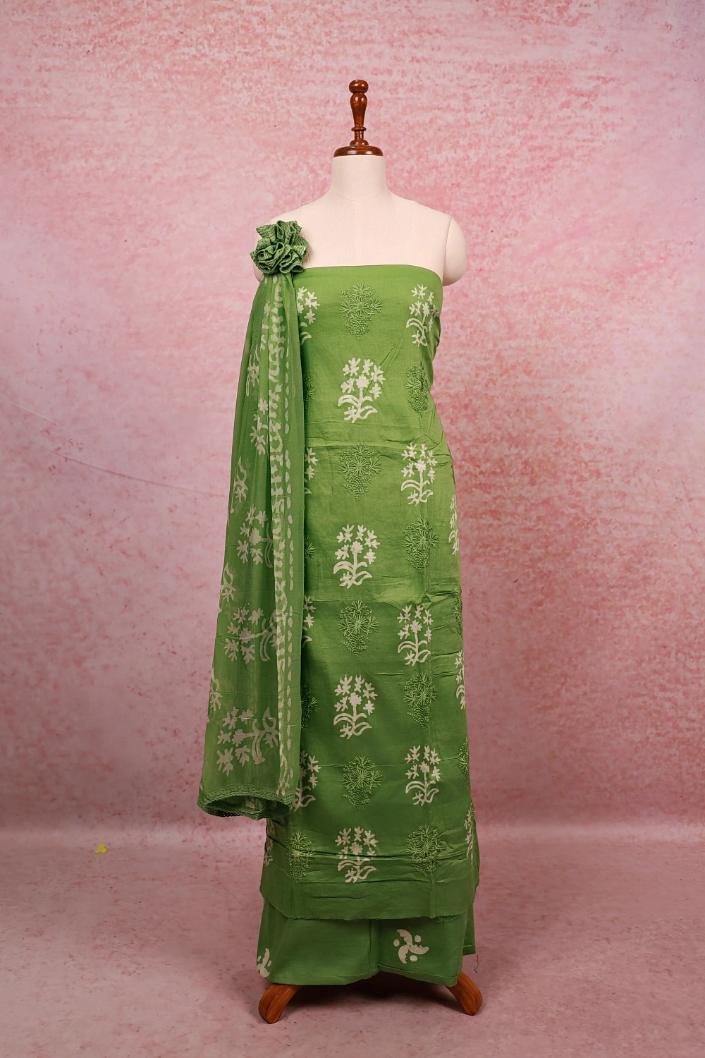 Pista Green Cotton Printed Unstitched Churidar Material. Includes Dupatta.
