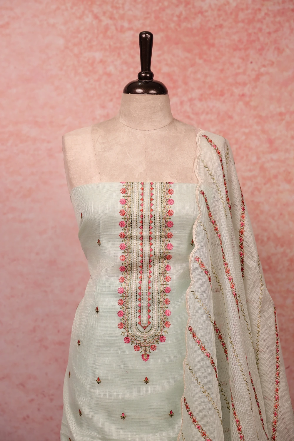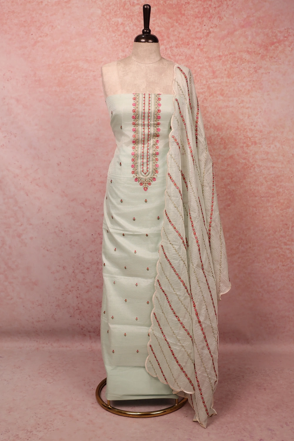 Pista Green Kota Butta Unstitched Churidar Material. Includes Dupatta.