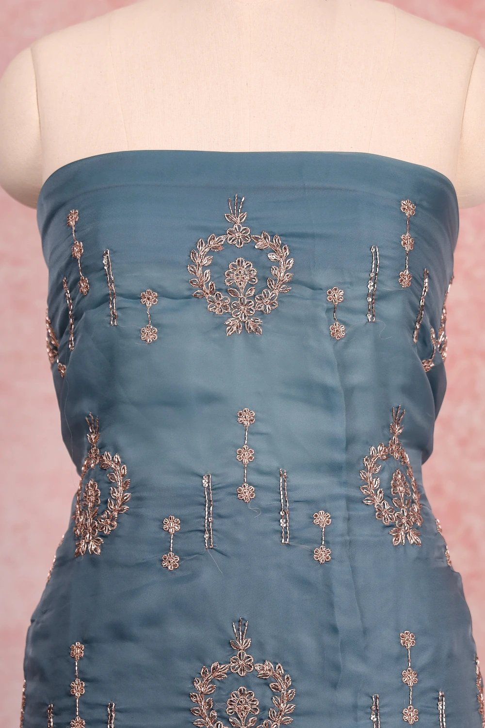 Powder Blue Organza Beads Work Unstitched Churidhar Material