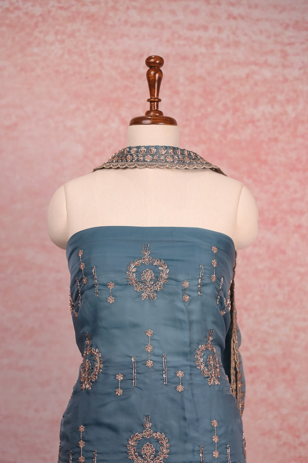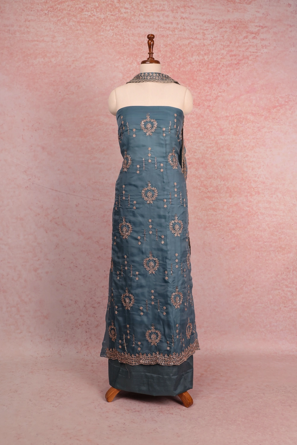 Powder Blue Organza Beads Work Unstitched Churidar Material. Includes Dupatta.