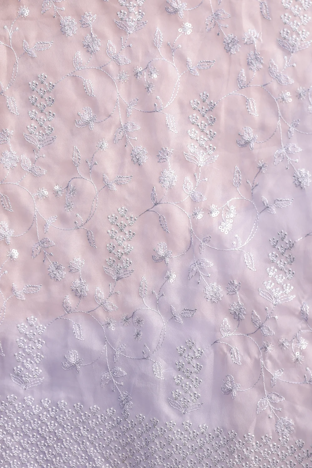 Powder Blue Organza Thread Design Saree with Scalp Border. Includes Un stitched Blouse