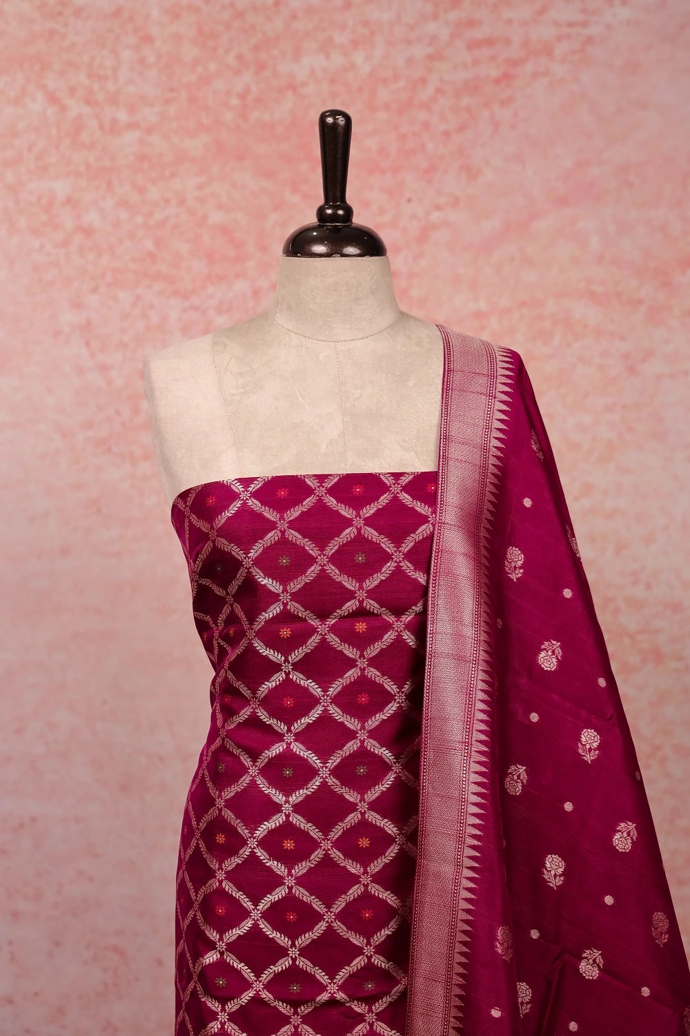 Purple Banarasi Designer Body Unstitched Churidar Material. Includes Dupatta.