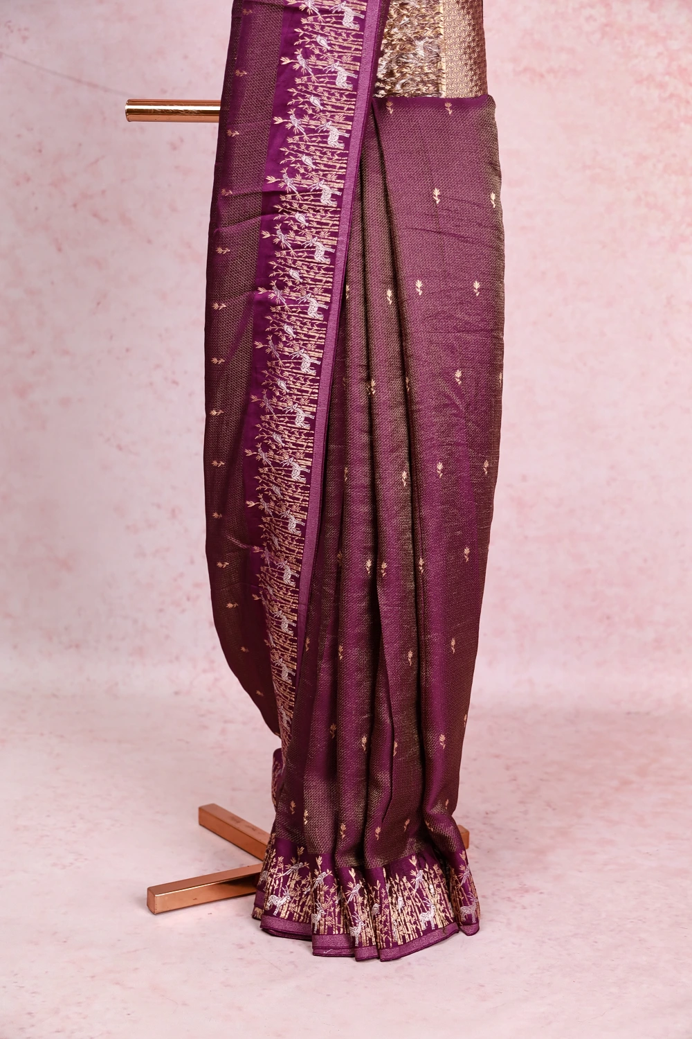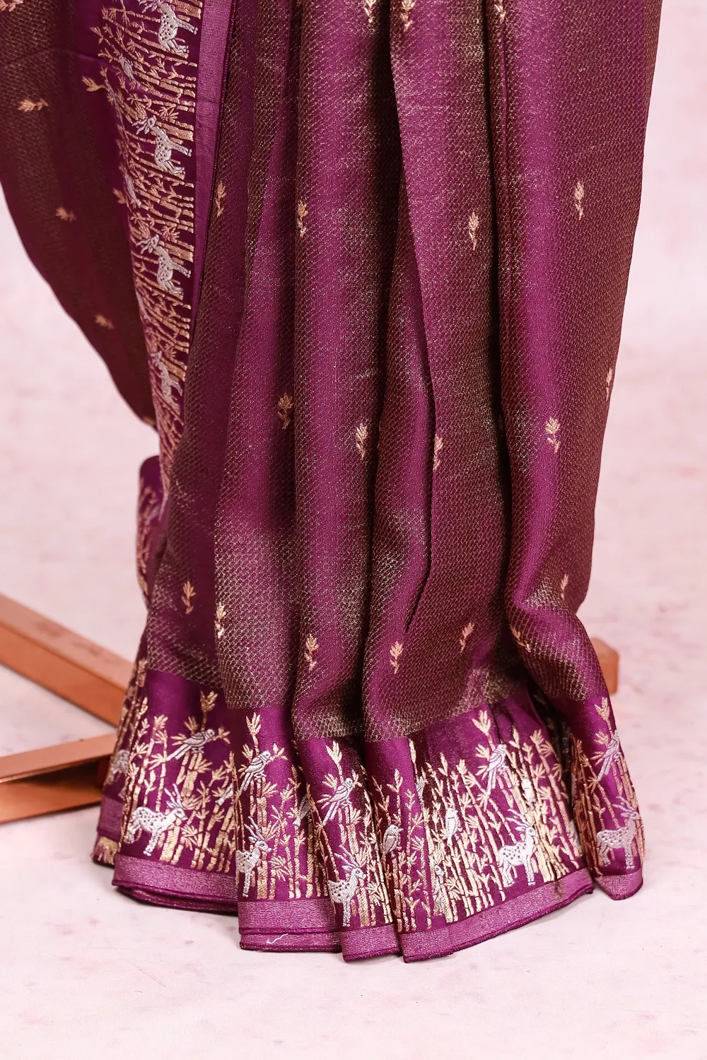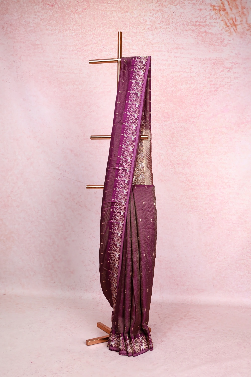 Purple Banarasi Silk Zari Design Saree With Banarasi Border. Includes Un Stitched Blouse