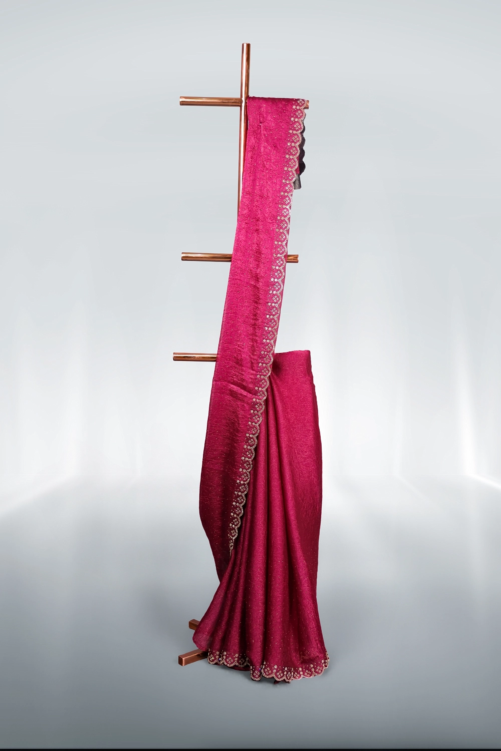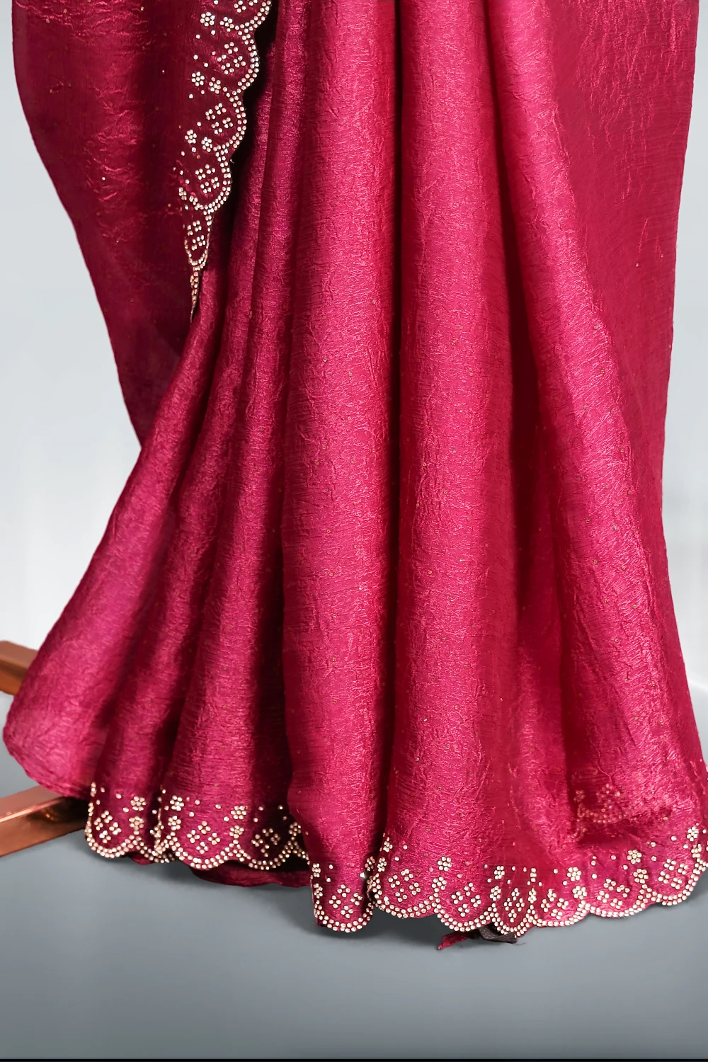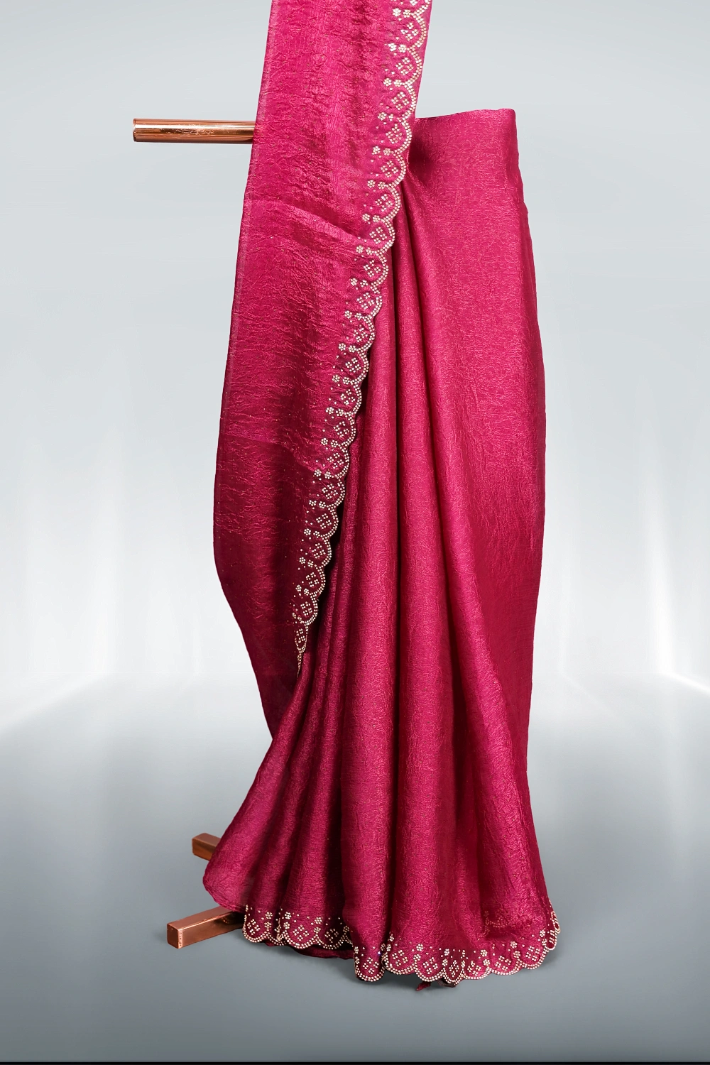 Purple Crush Organza Stone Work Saree With Scallop Border. Includes Un Stitched Blouse