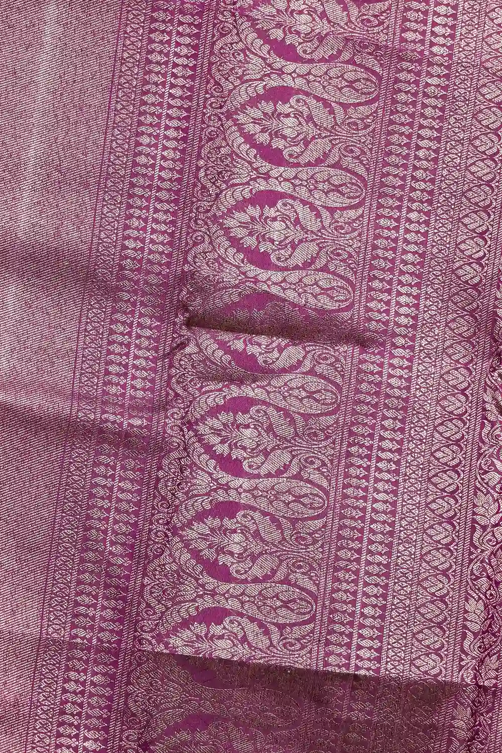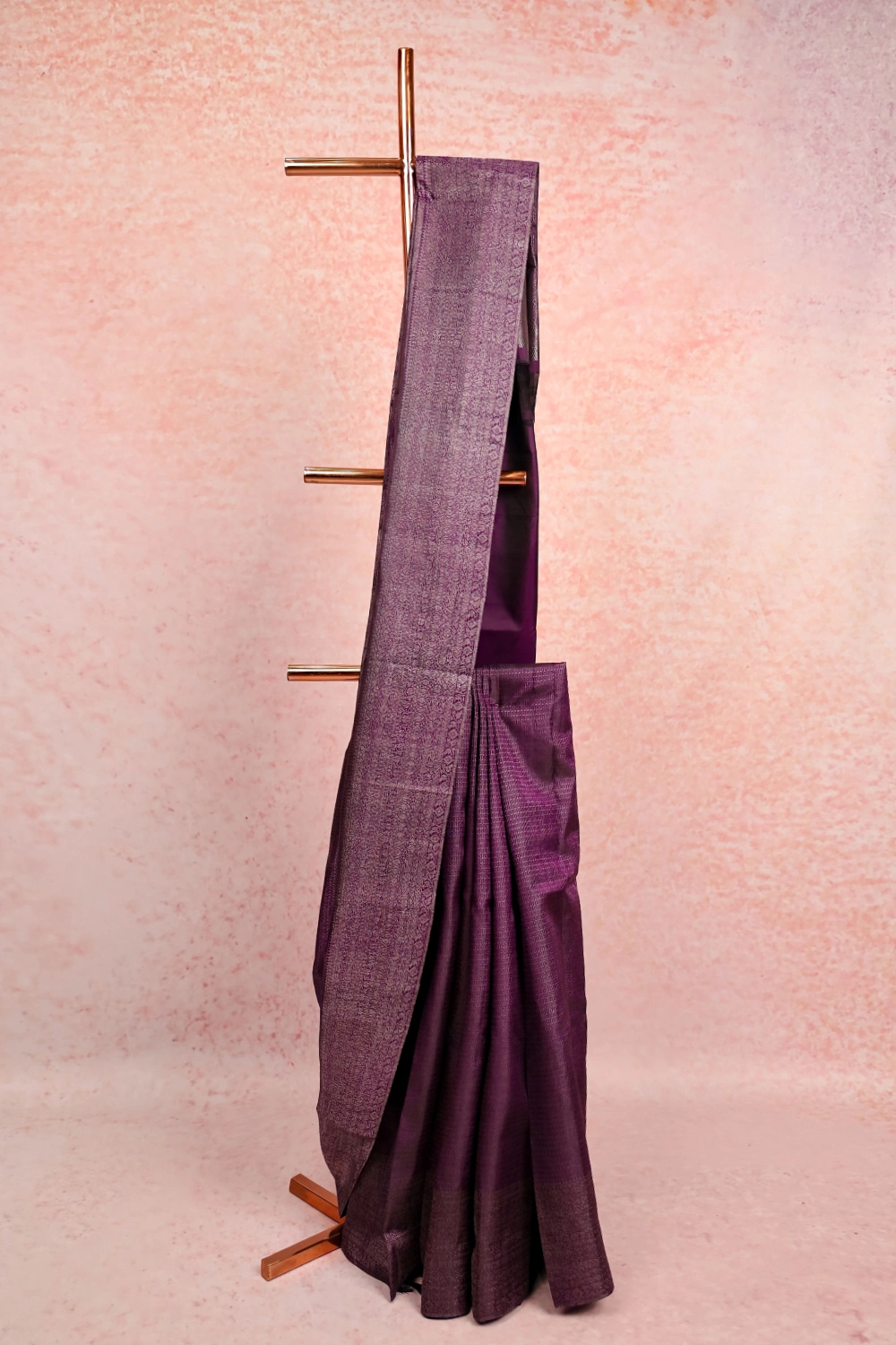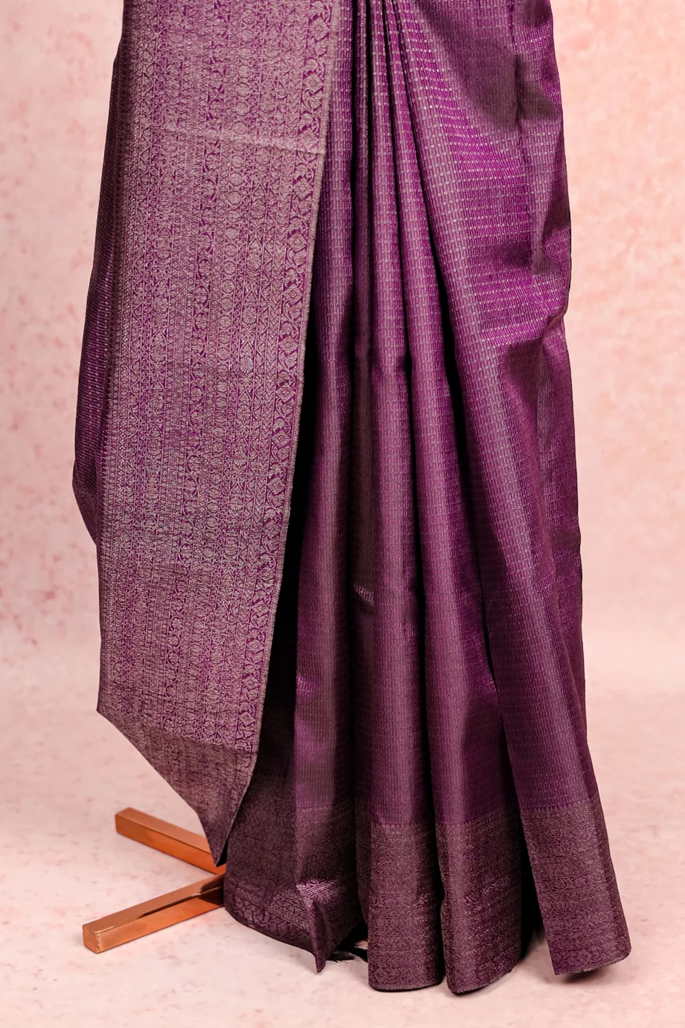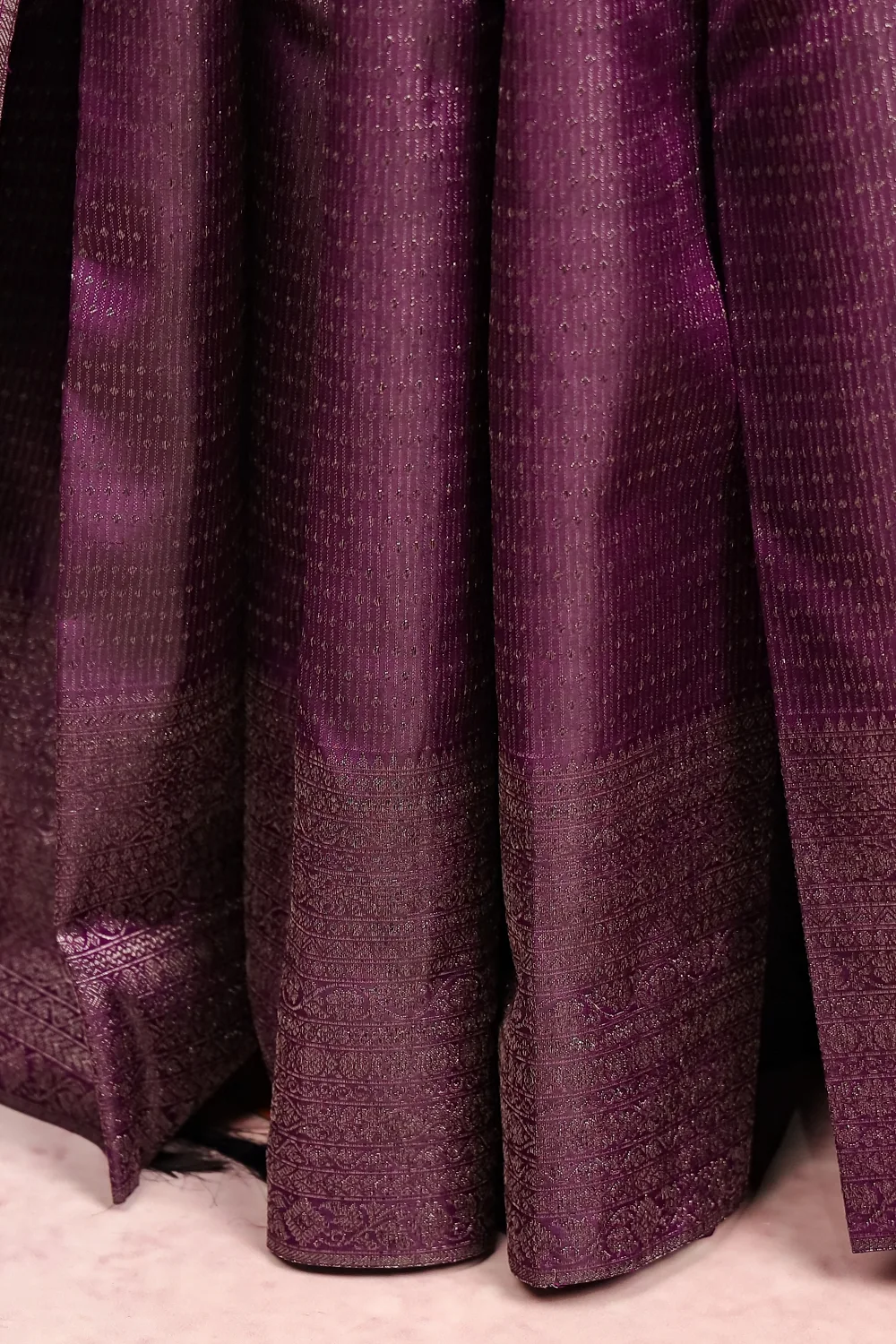 Purple Kancheepuram Silk Brocade Saree with Designer Border. Includes Unstitched Blouse