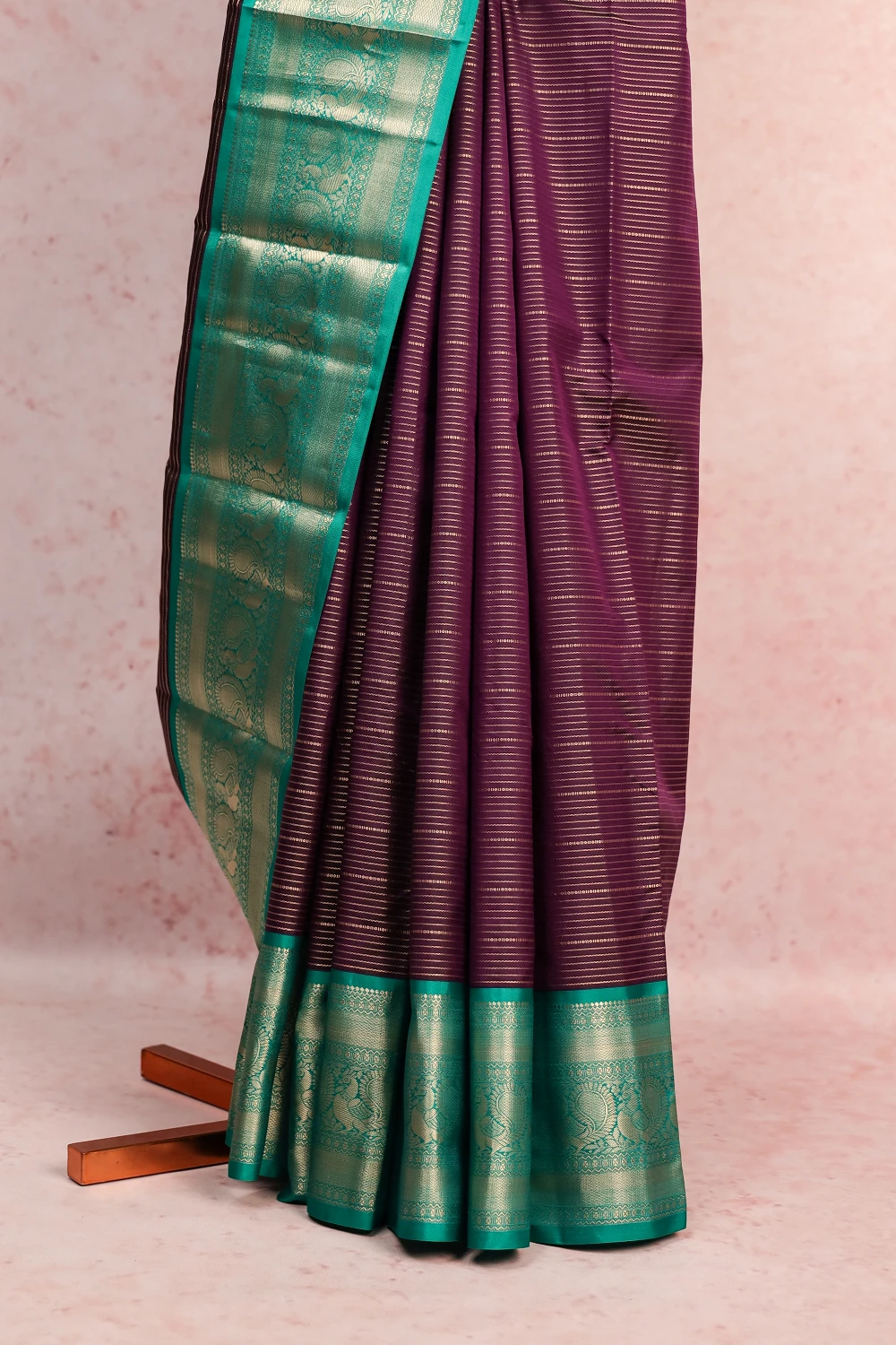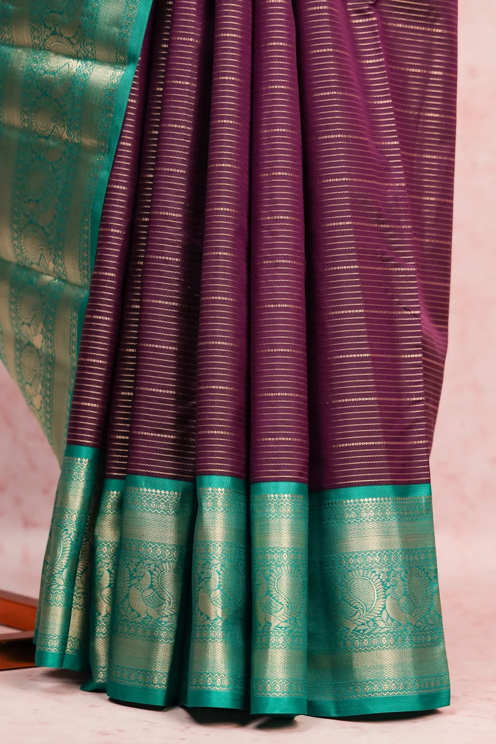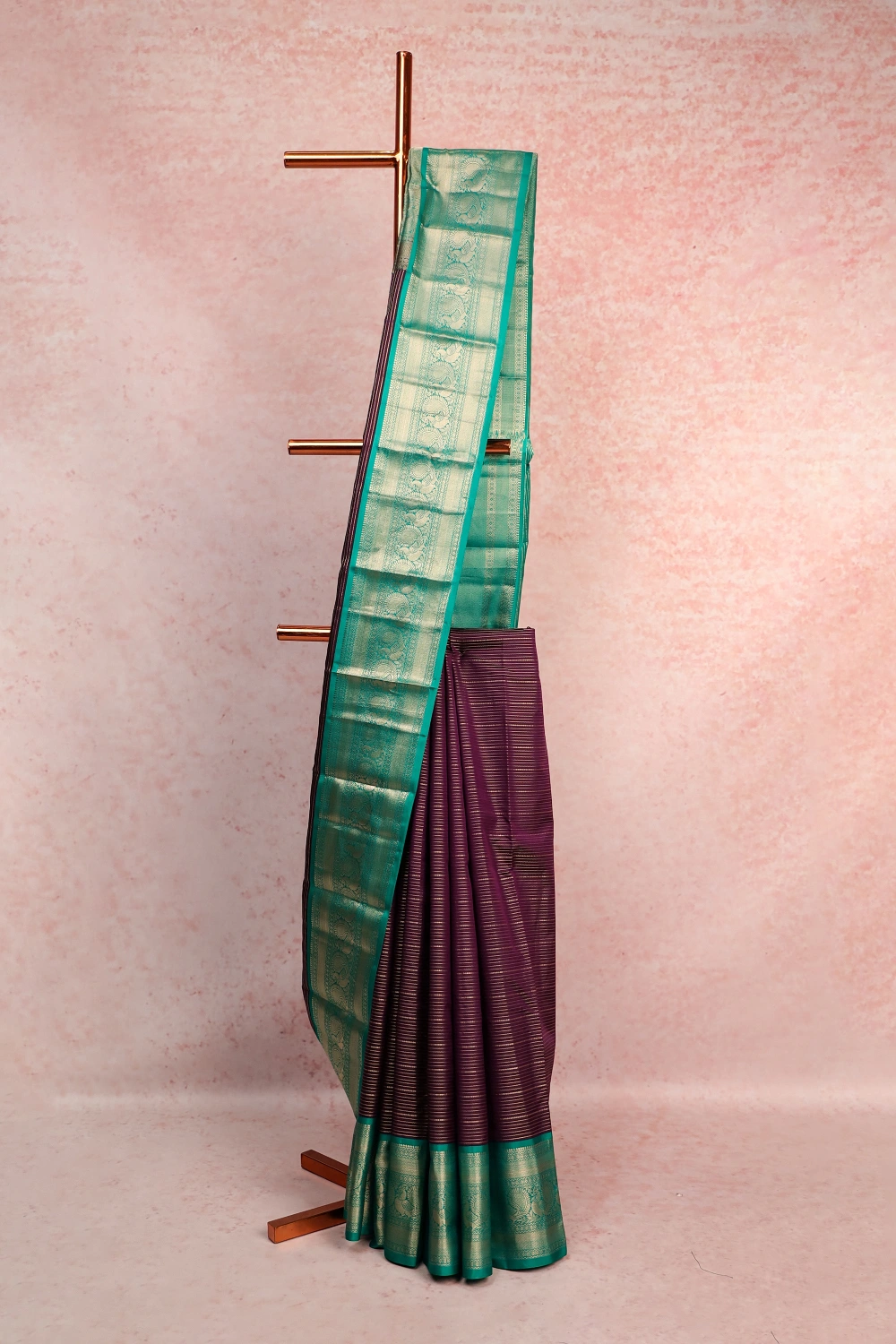 Purple Kancheepuram Soft Silk Lines Saree with Designer Border. Includes Unstitched Blouse