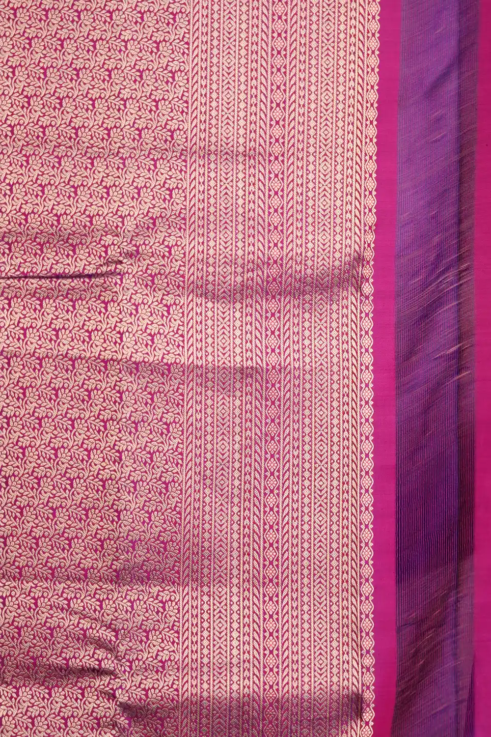 Purple Kancheepuram Soft Silk Self Design Saree with Designer Border. Includes Unstitched Blouse
