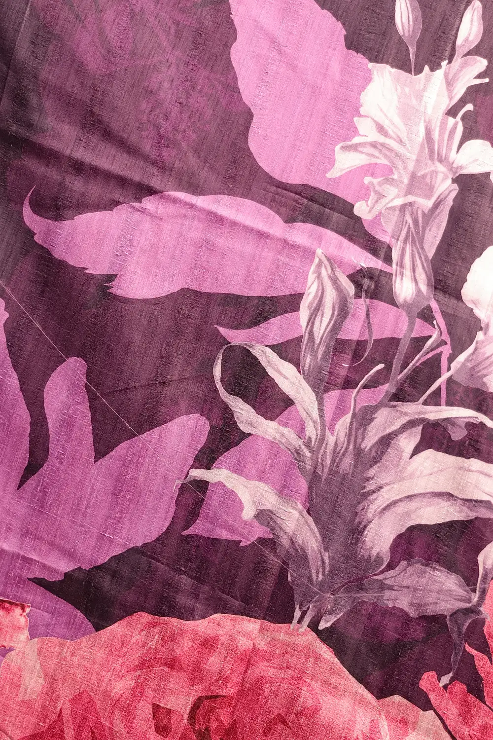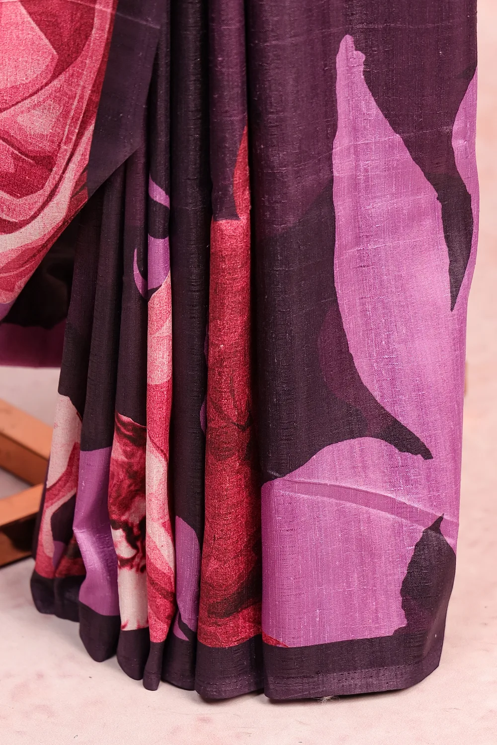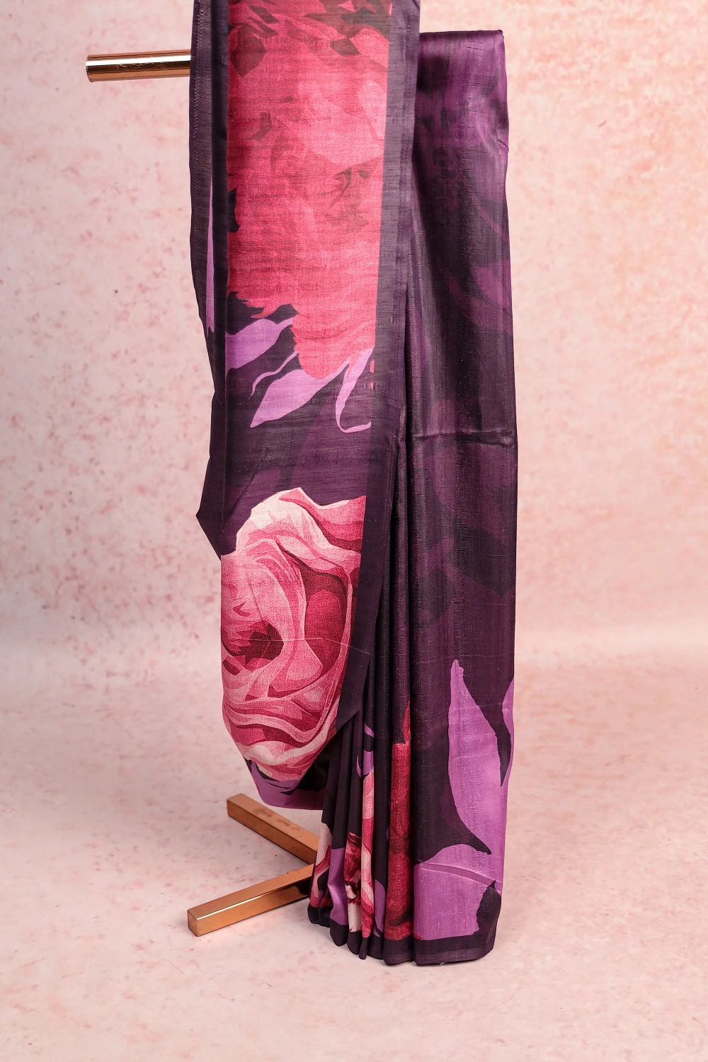 Purple Semi Jute Printed Saree with Without Border. Includes Un stitched Blouse