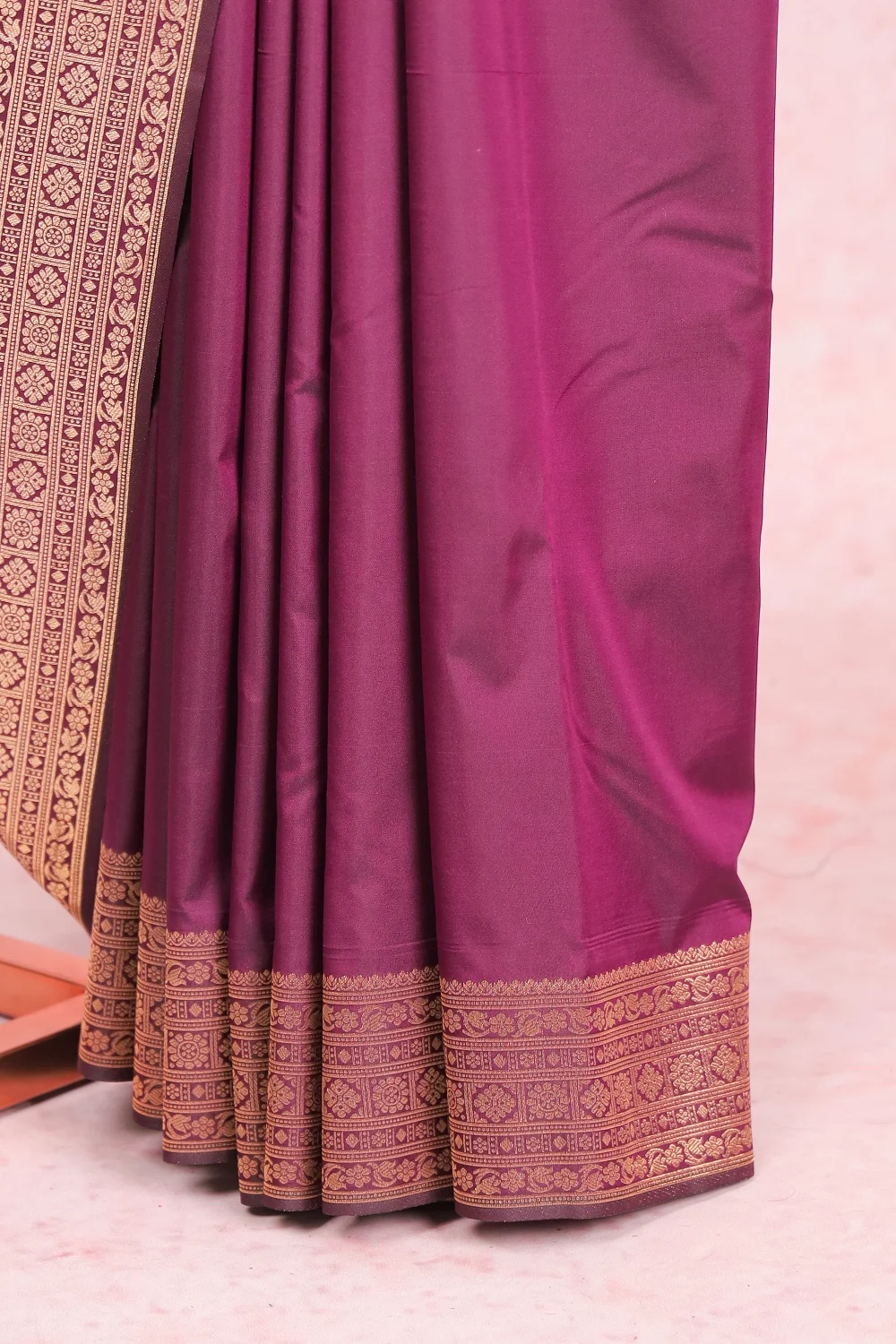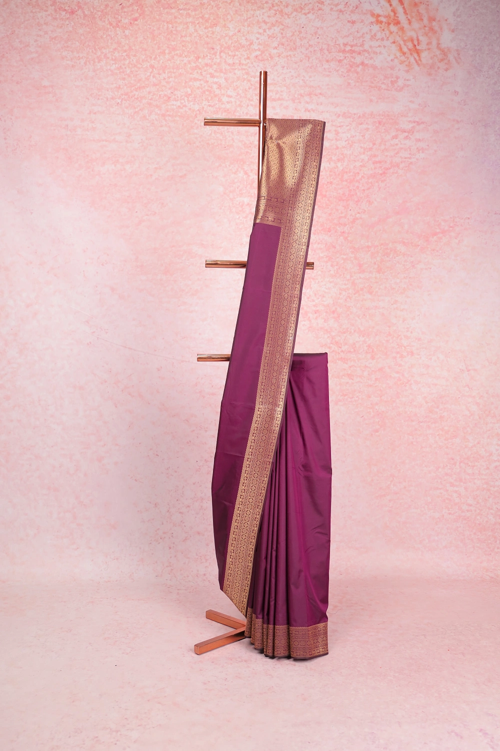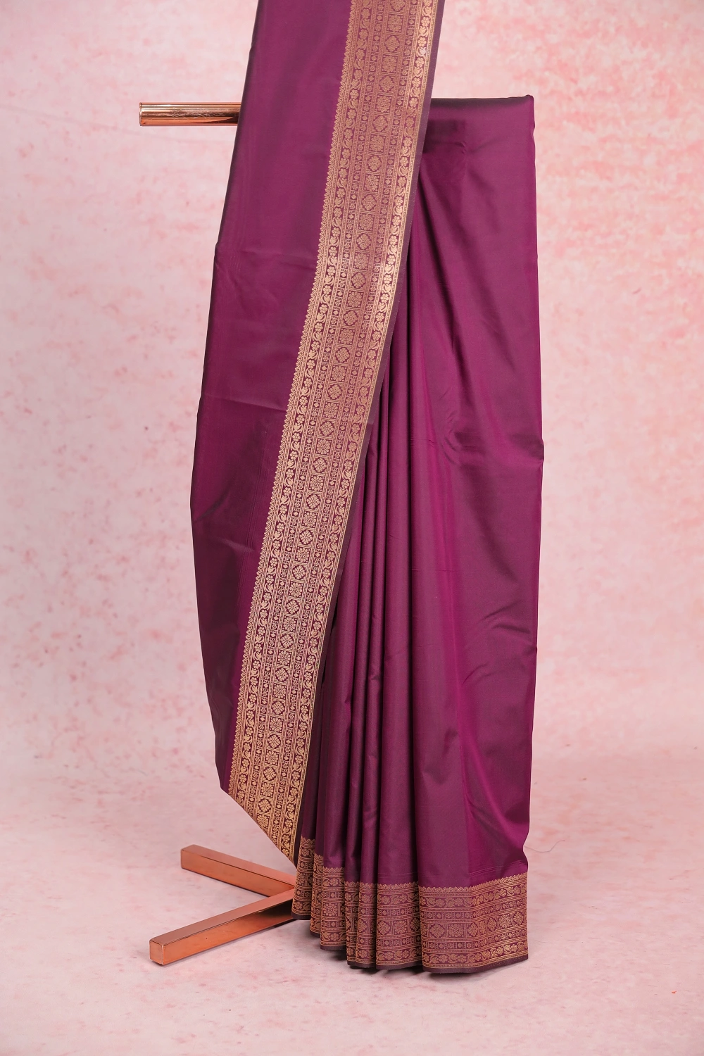 Purple Semi Silk Plain Saree with Zari Border. Includes Unstitched Blouse