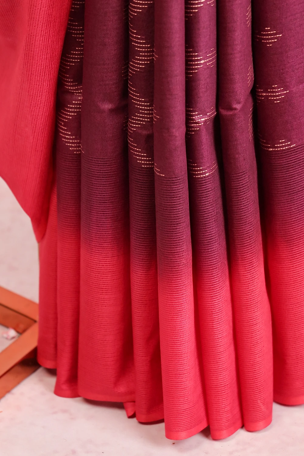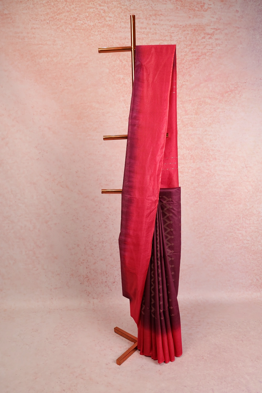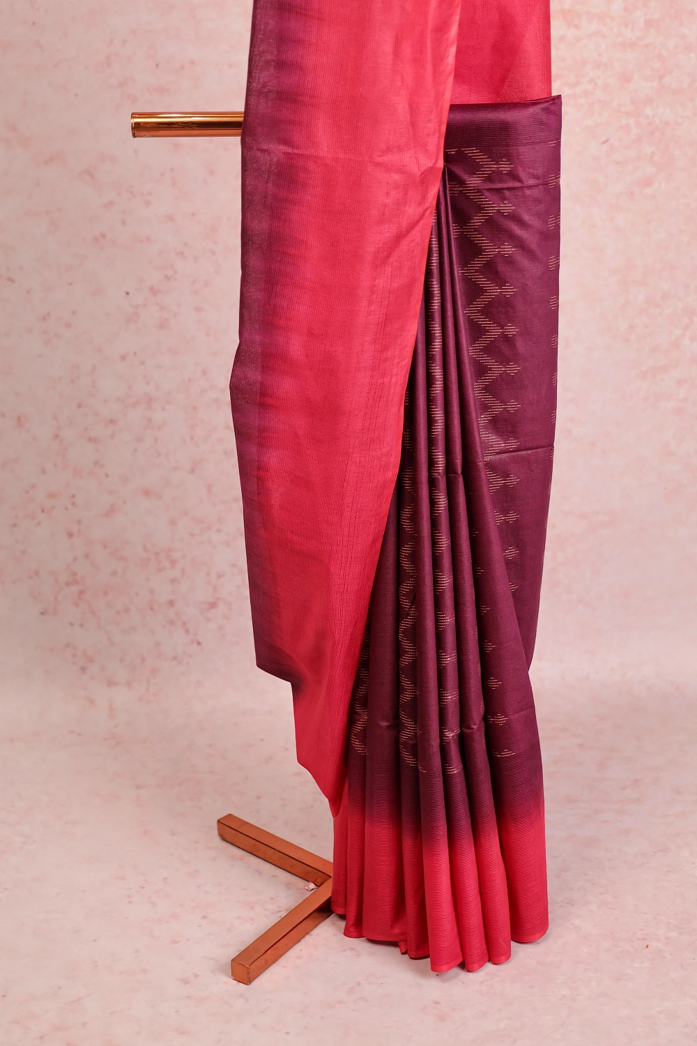 Purple Semi Tussar Thread Design Saree with Plain Border. Includes Unstitched Blouse