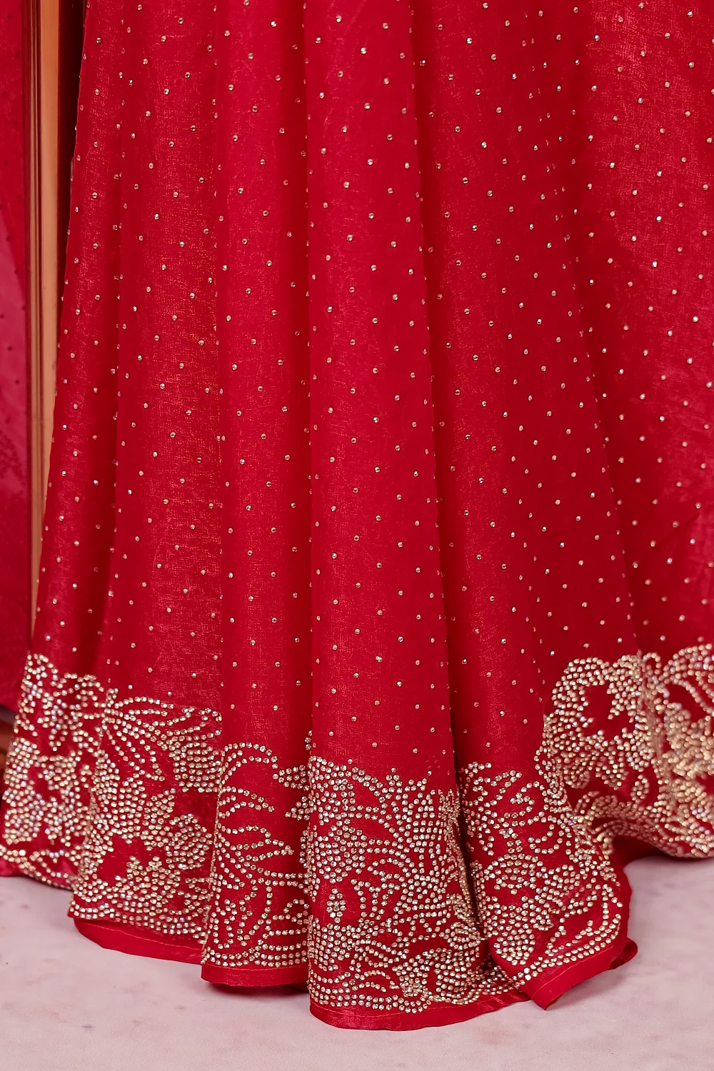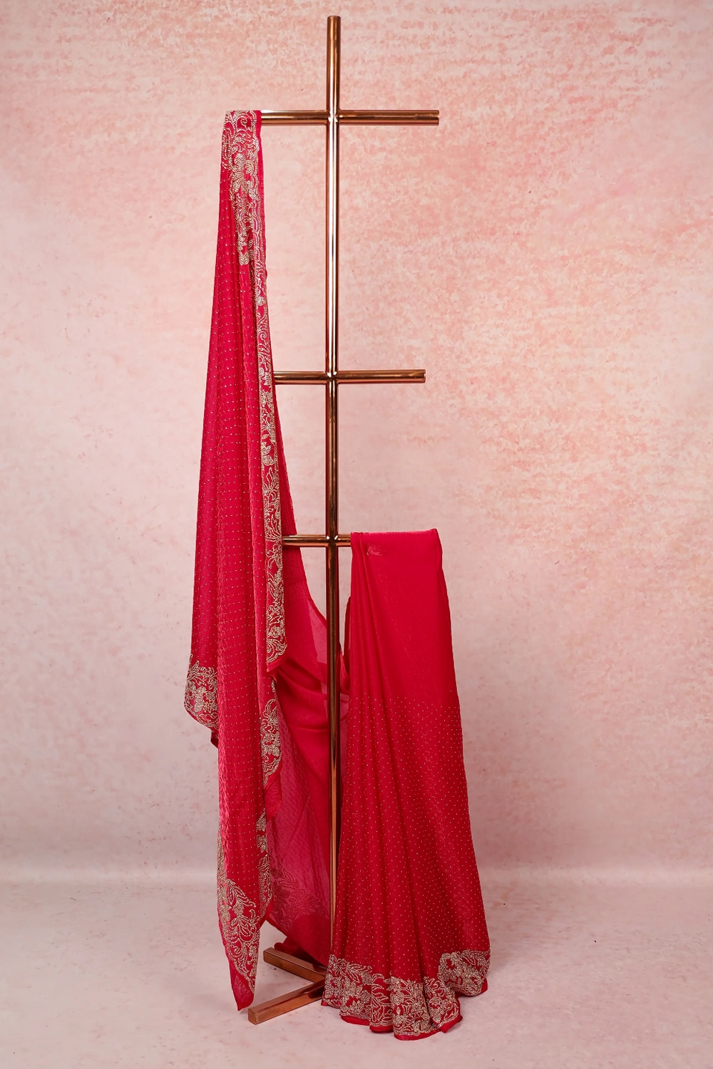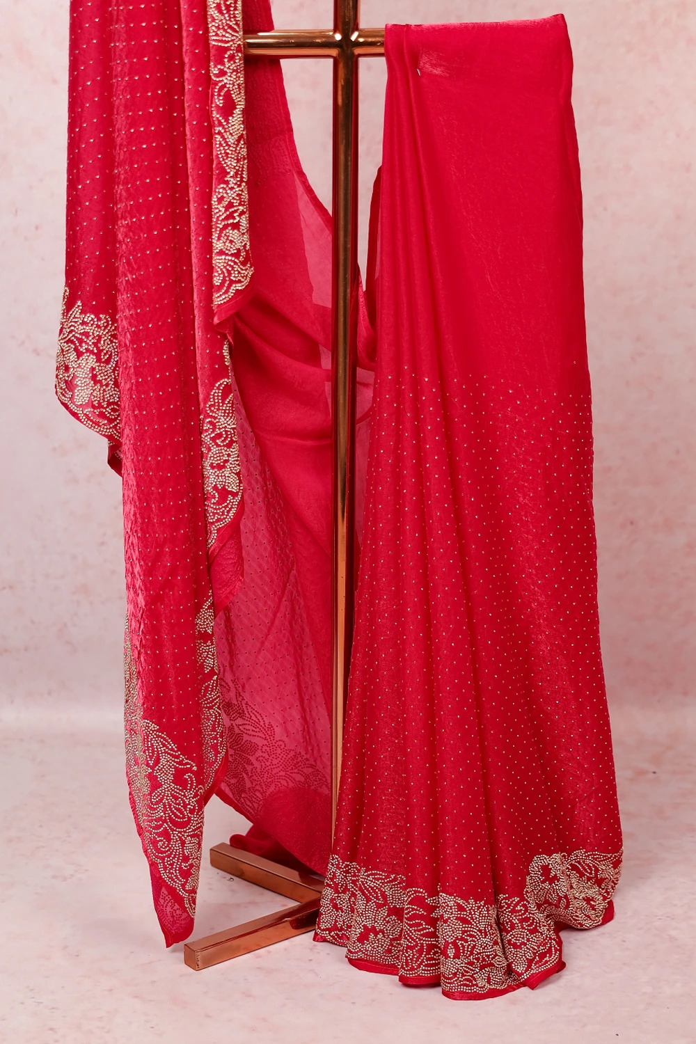 Rani Pink Crush Organza Saree with Unstiched Blouse Piece