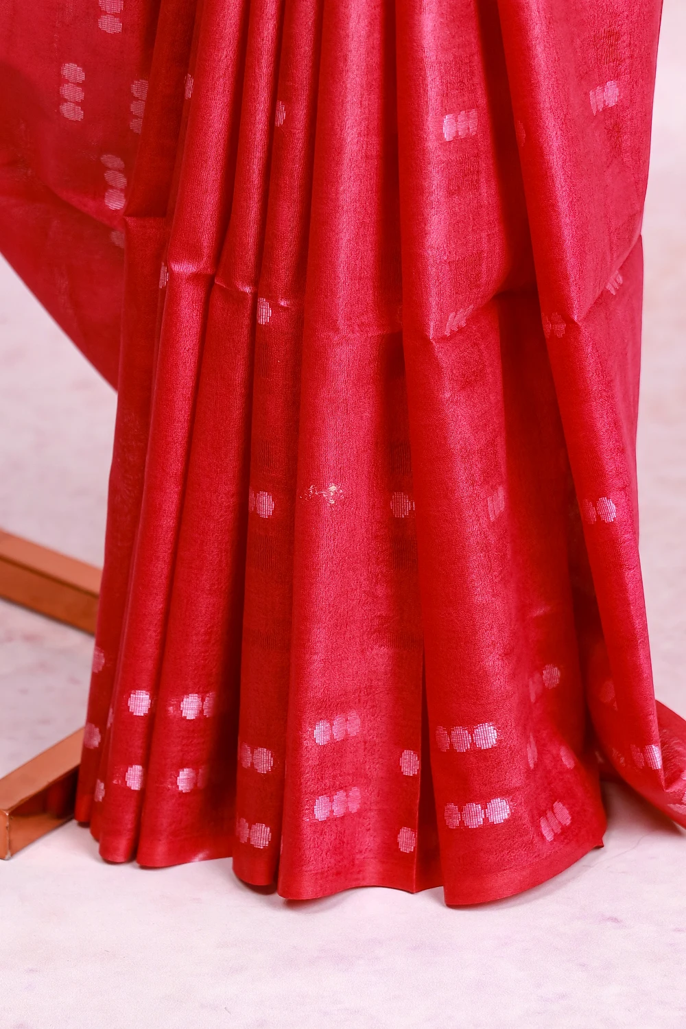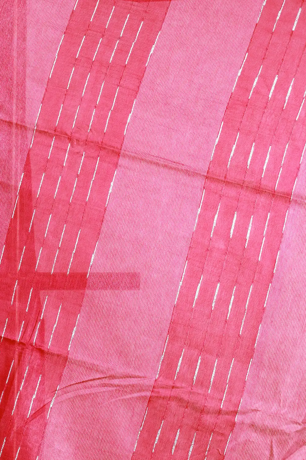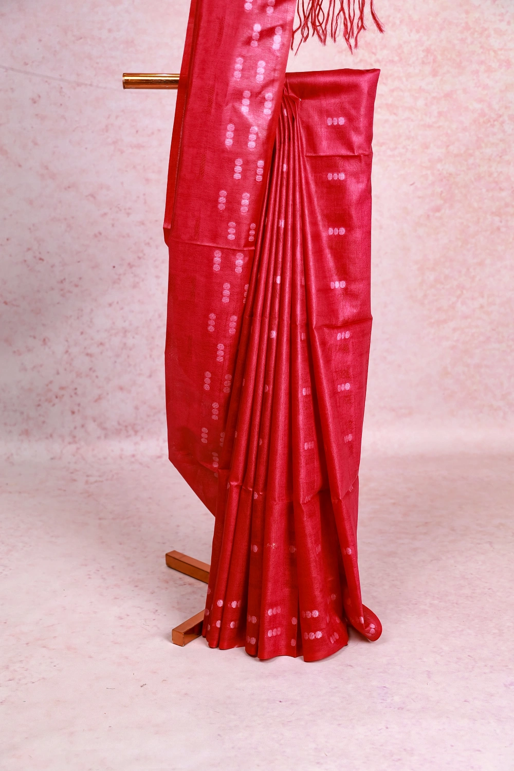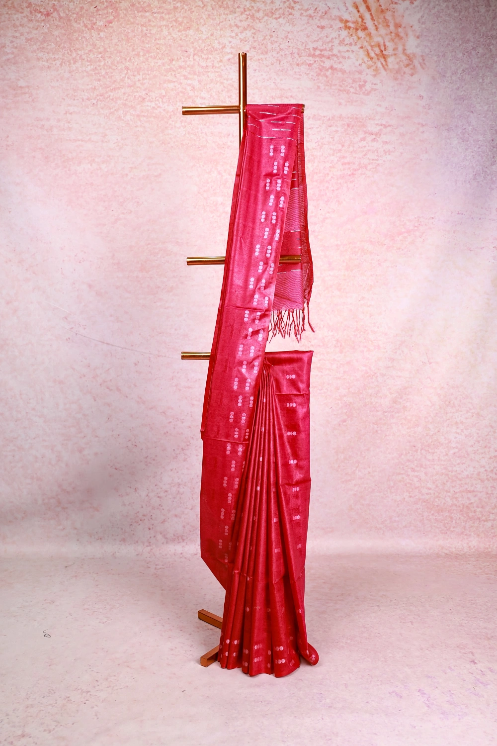 Rani Pink Semi Tussar Small Butta Saree Without Border. Includes Unstitched Blouse
