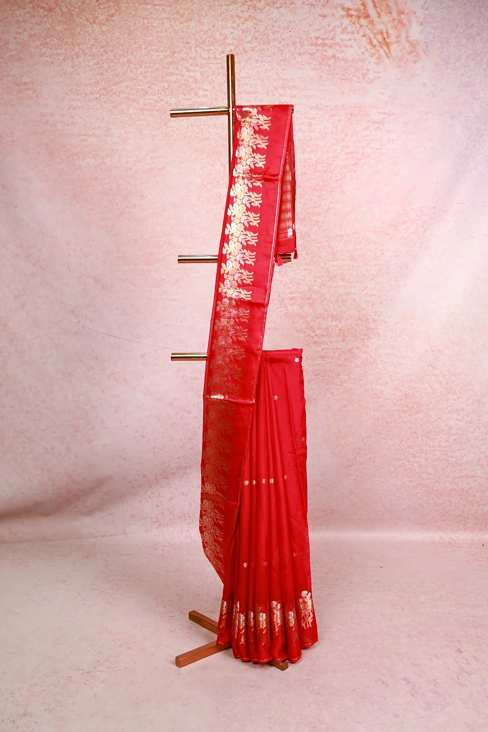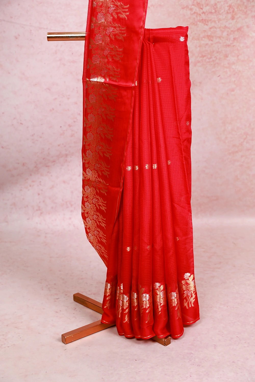 Rani Pink Soft Silky Kota Butta Saree With Zari Border. Includes Unstitched Blouse