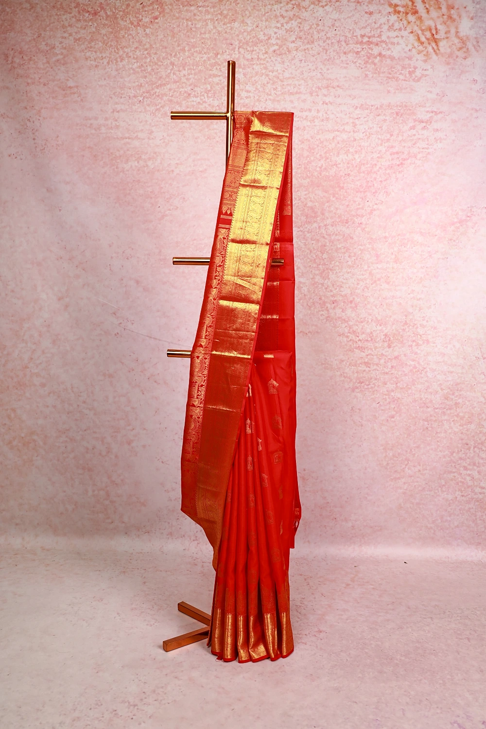 Red Kancheepuram Silk Butta With Pallak Border. Includes Unstitched Blouse
