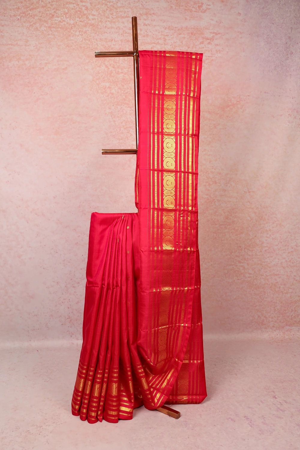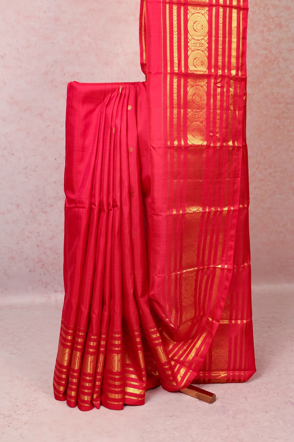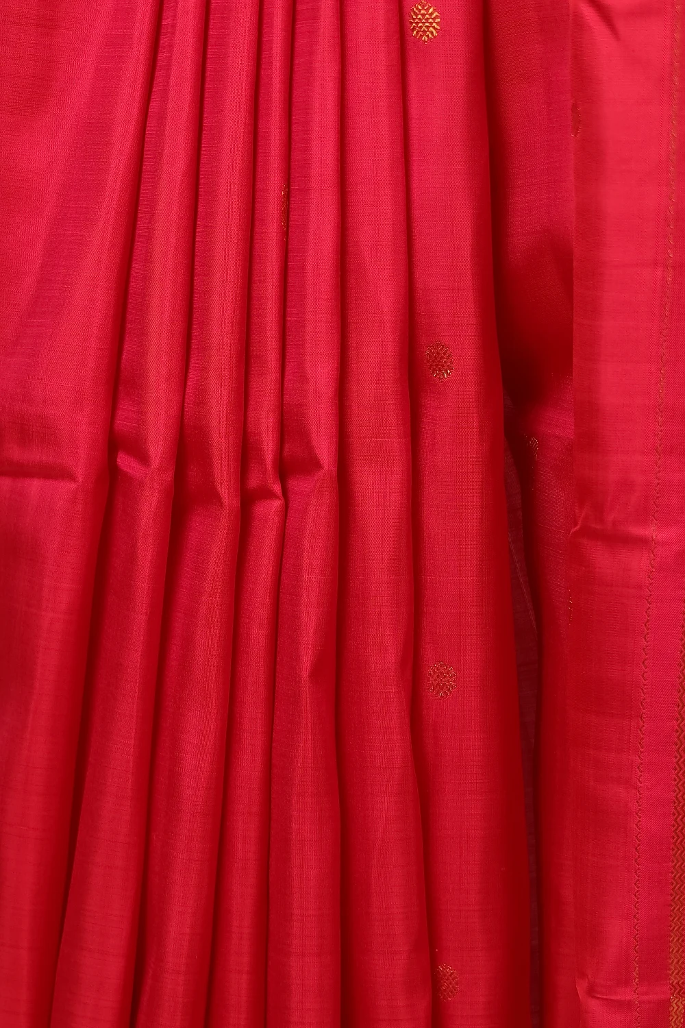 Red Traditional Kancheepuram Silk Butta Saree with Designer border. Includes Unstitched Blouse