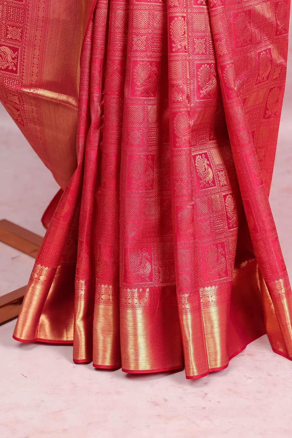 Reddish Pink Kancheepuram Silk Saree