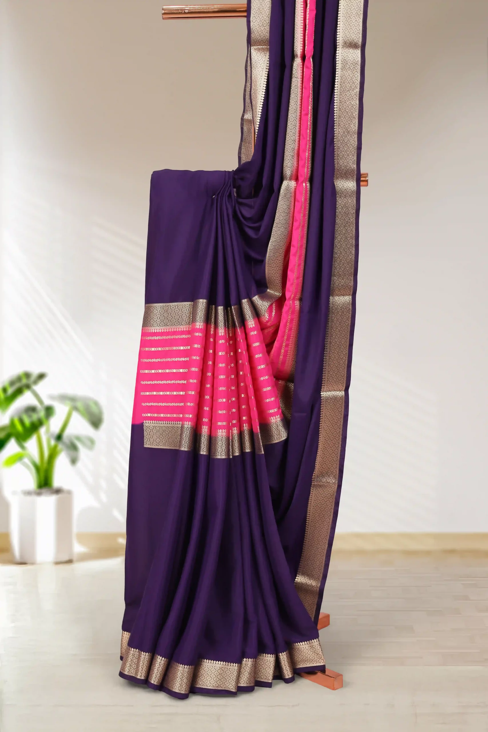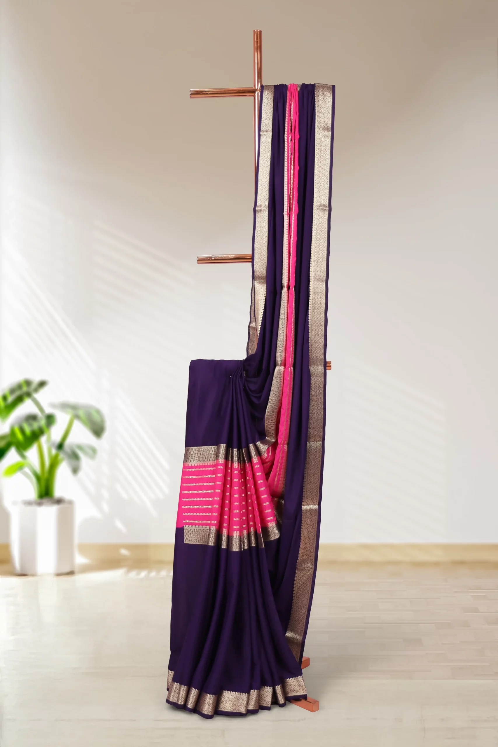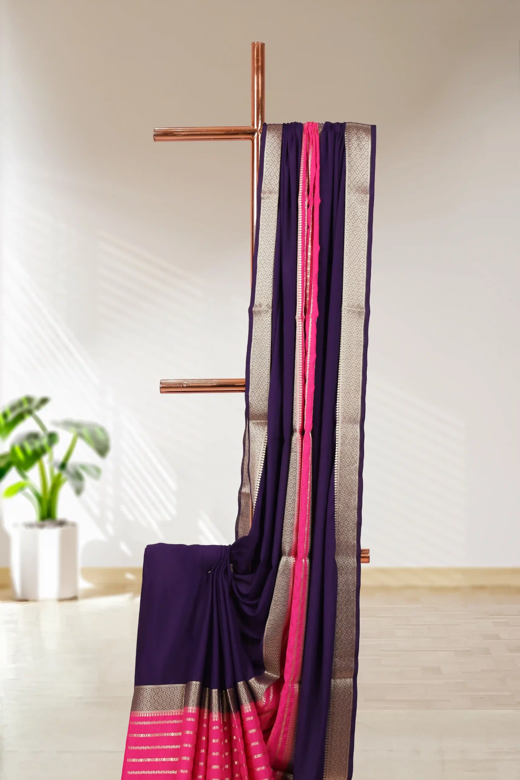 Royal Blue Georgette Lines Saree with Designer border. Includes Unstitched Blouse