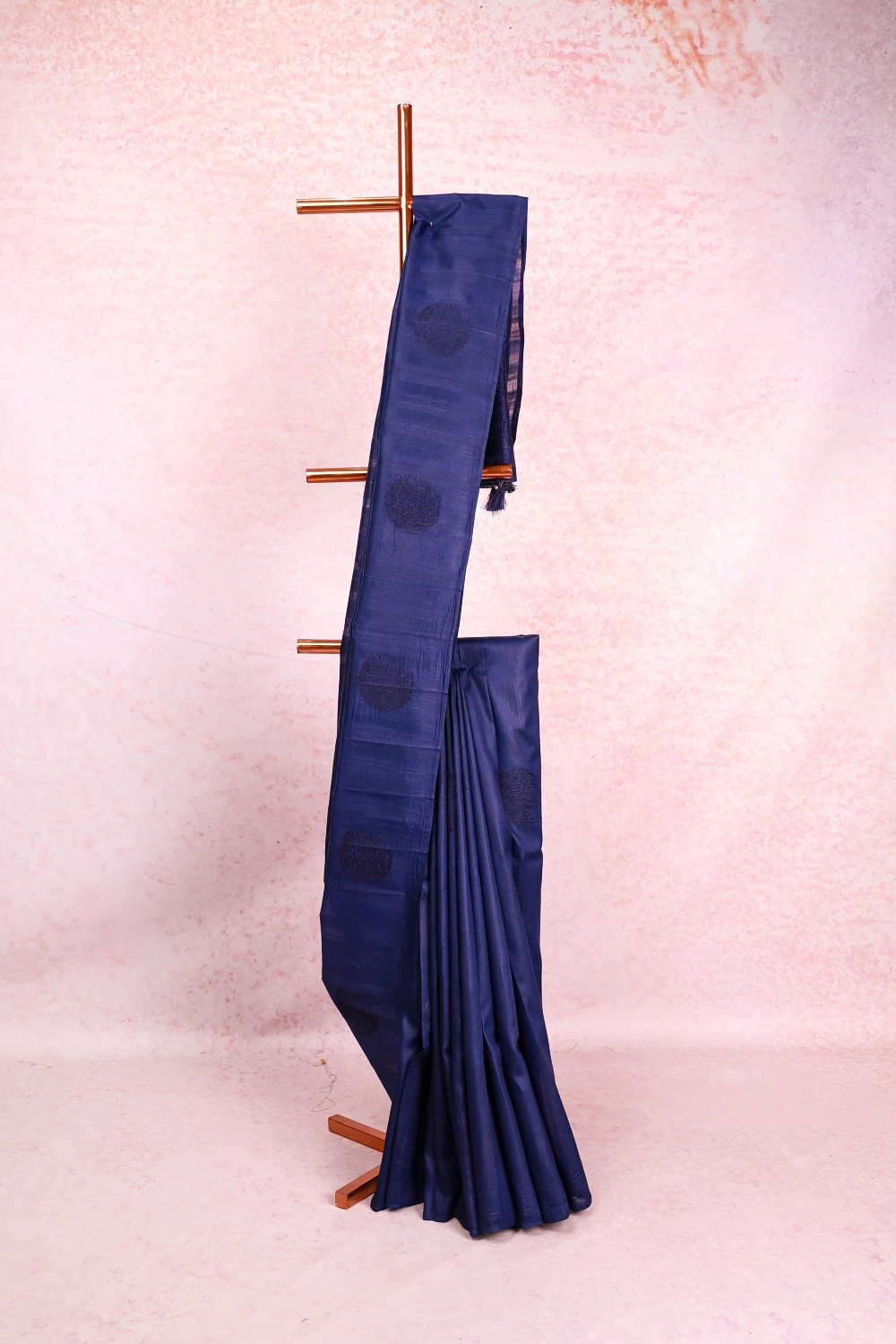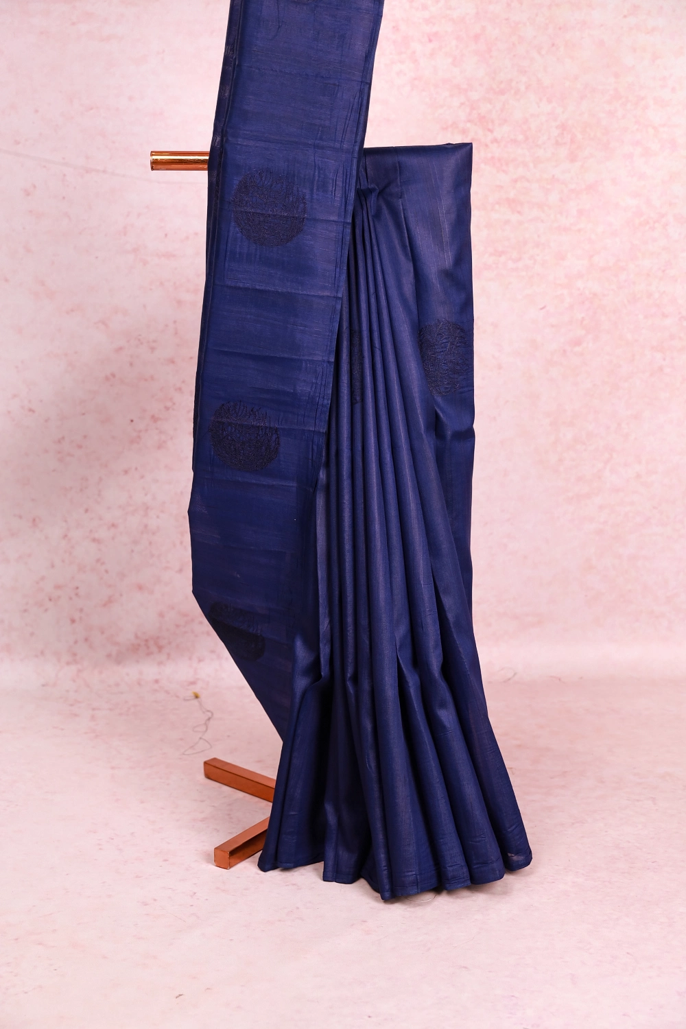 Royal Blue Semi Tussar Thread Design Saree Without Border. Includes Un Stitched Blouse