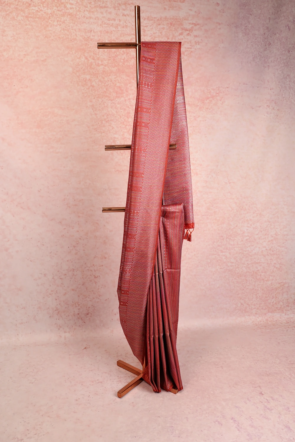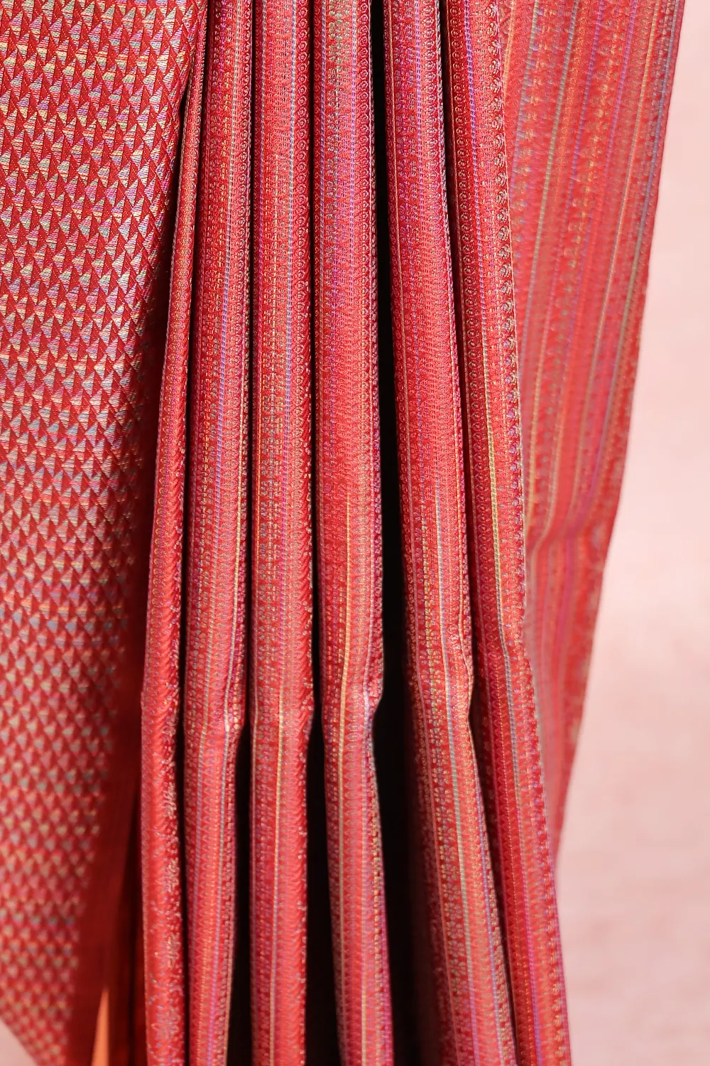 Rust Orange Semi Kathan Silk Zari Design Saree with Without Border. Includes Unstitched Blouse