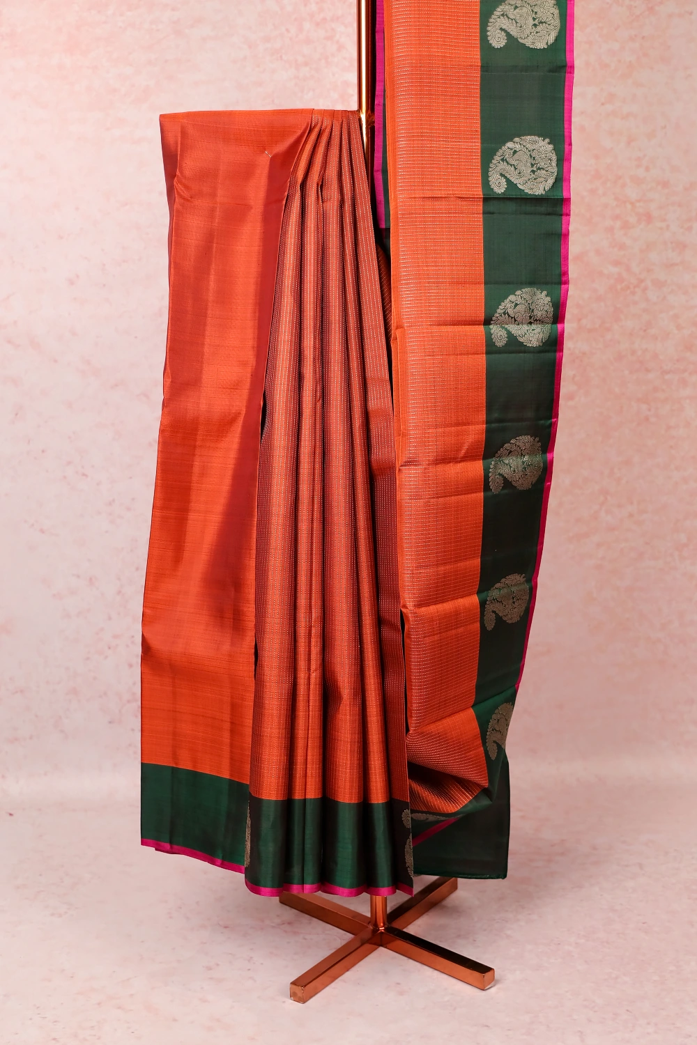 Rust Orange Traditional Kancheepuram Silk Saree