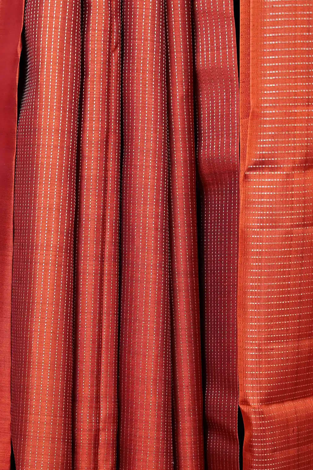 Rust Orange Traditioanl Kancheepuram Silk Lines Saree with Designer border. Includes Unstitched Blouse