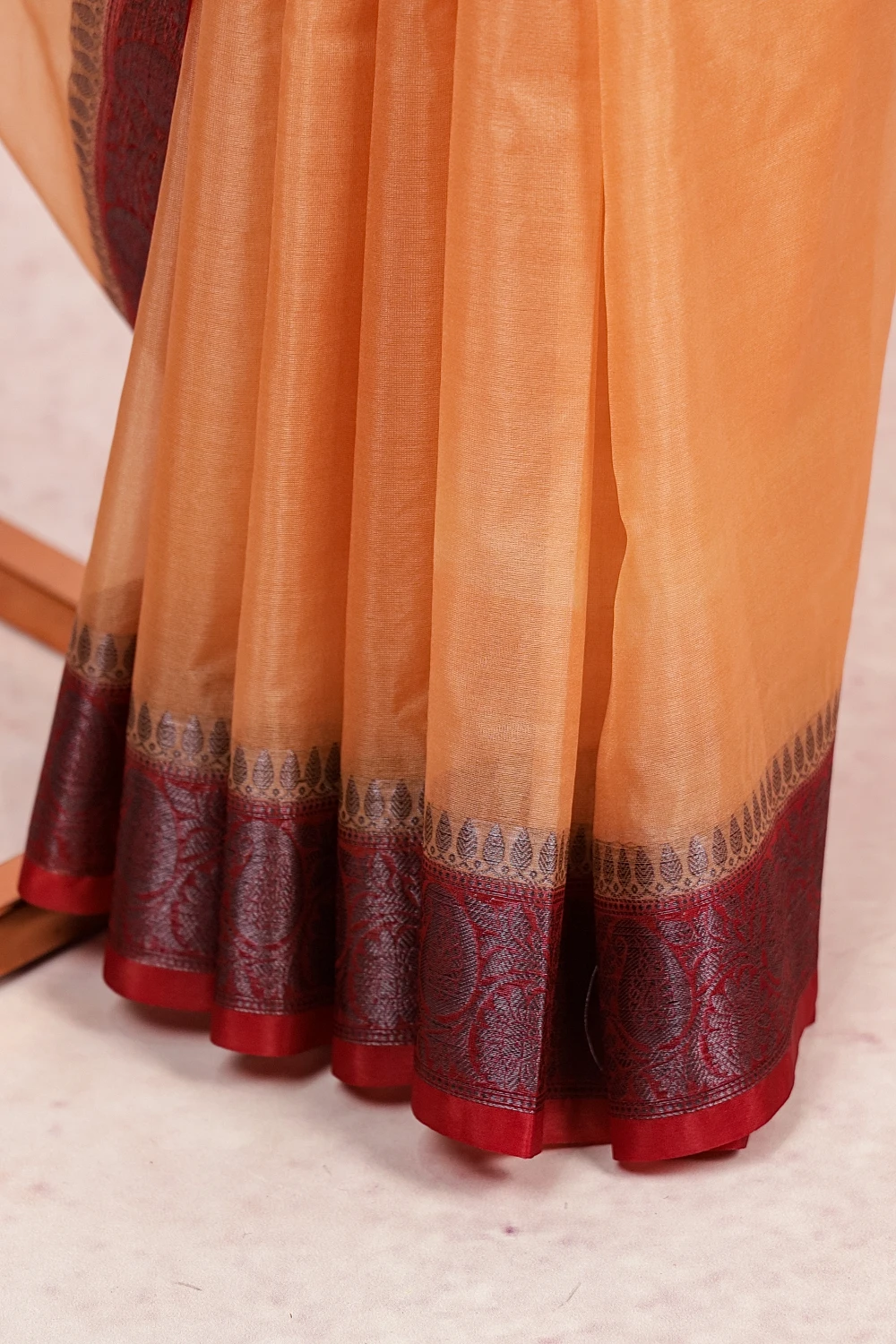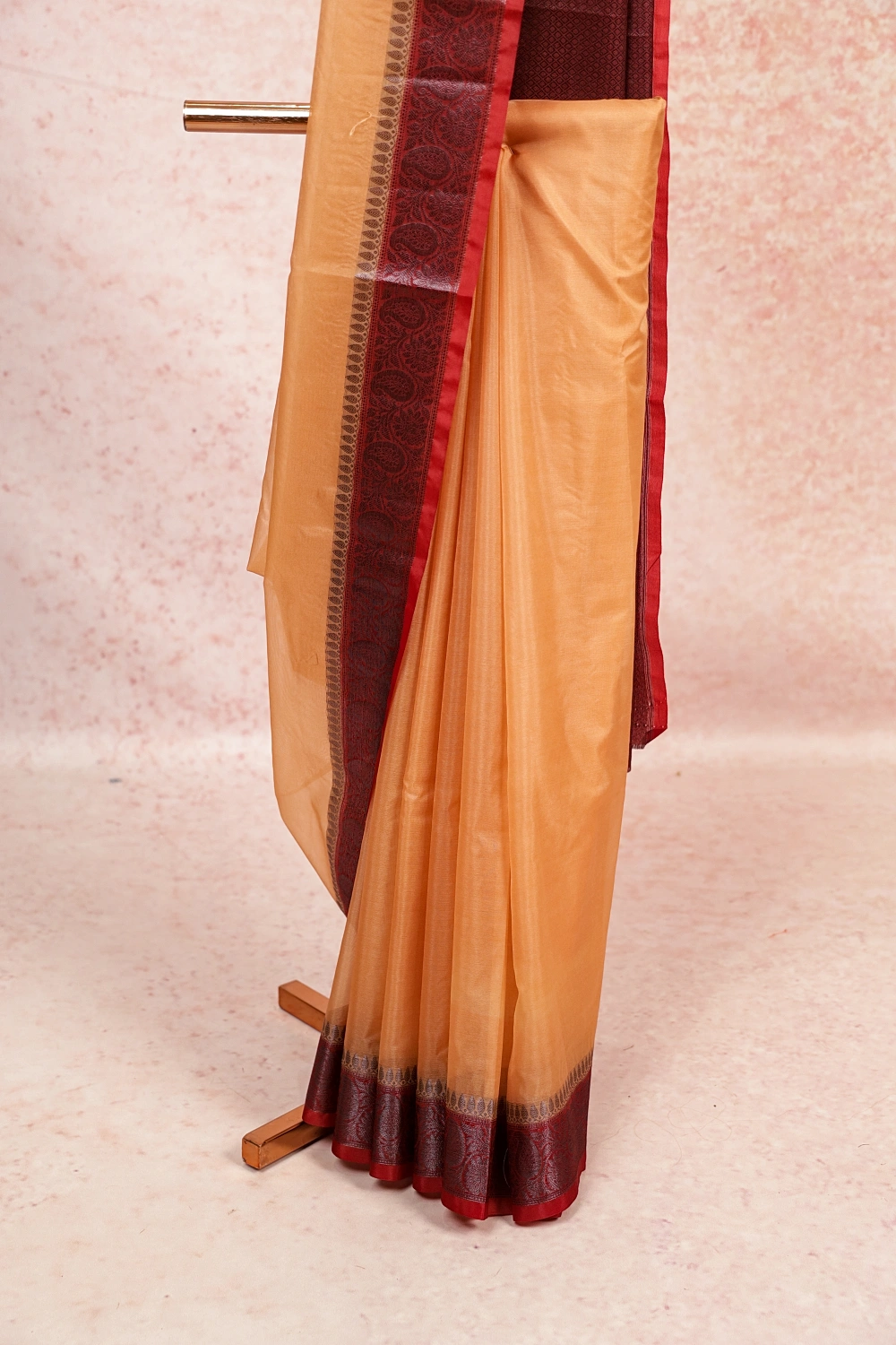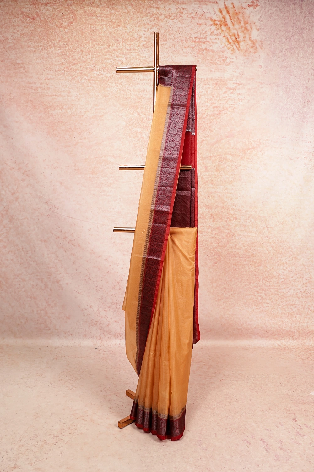 Sandal Colour Semi Banarasi Plain Saree With Designer Border. Includes Unstitched Blouse