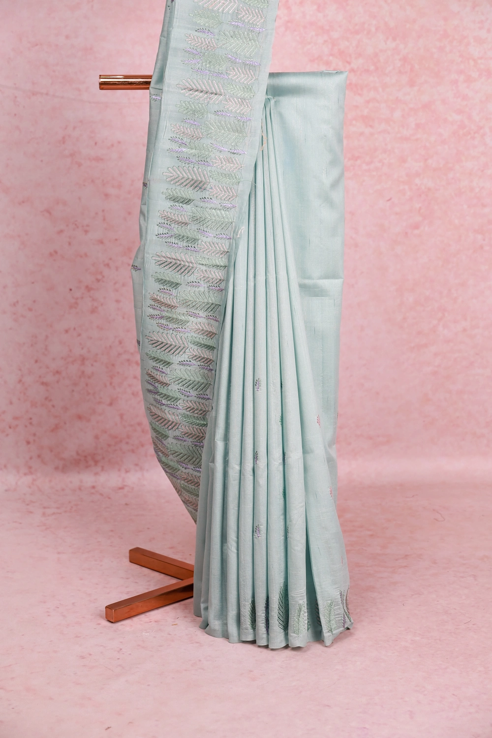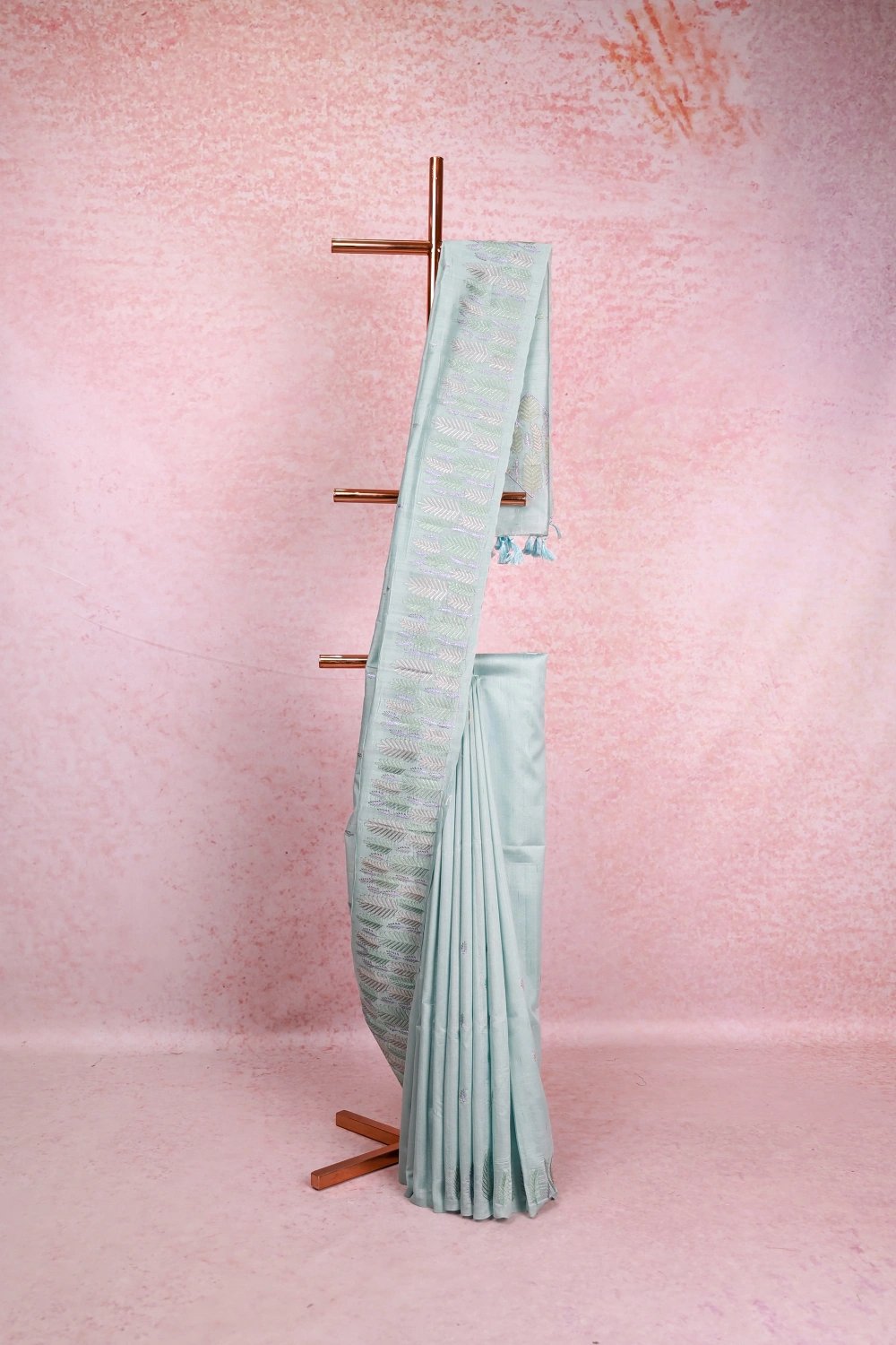 Sea Green Semi Jute Thread Butta Design Saree with Designer Border. Includes Unstitched Blouse