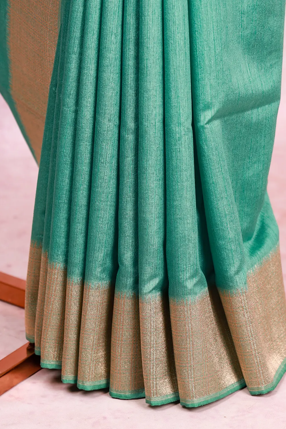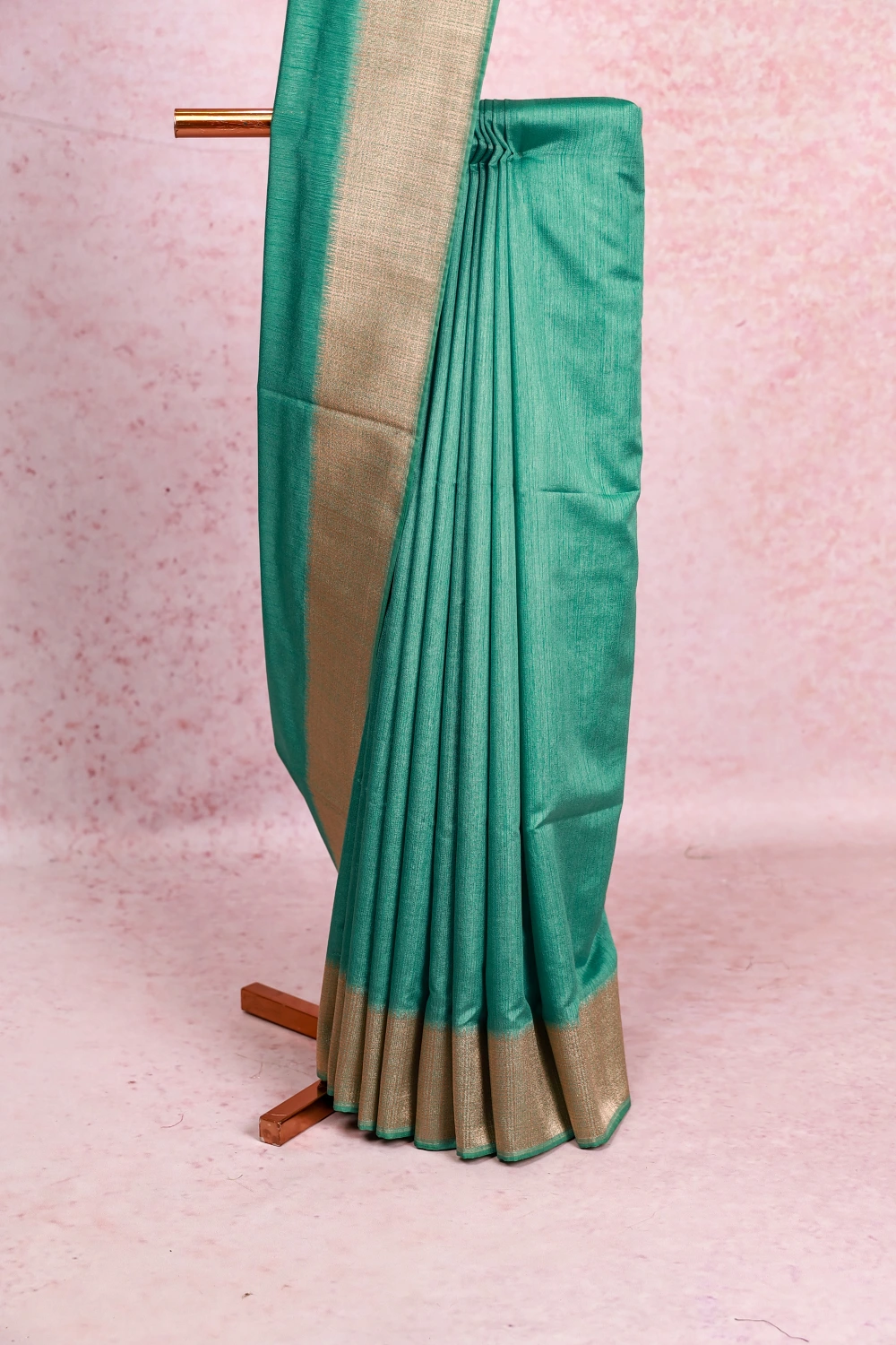 Sea Green Semi Silk Plain Saree With Zari Border. Includes Un Stitched Blouse