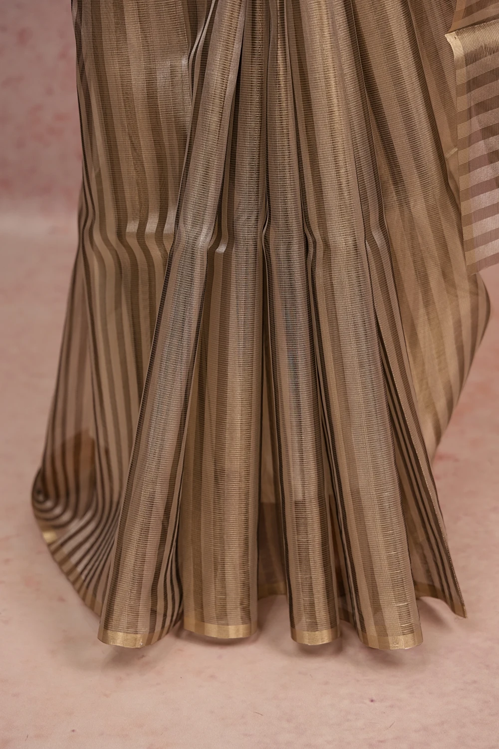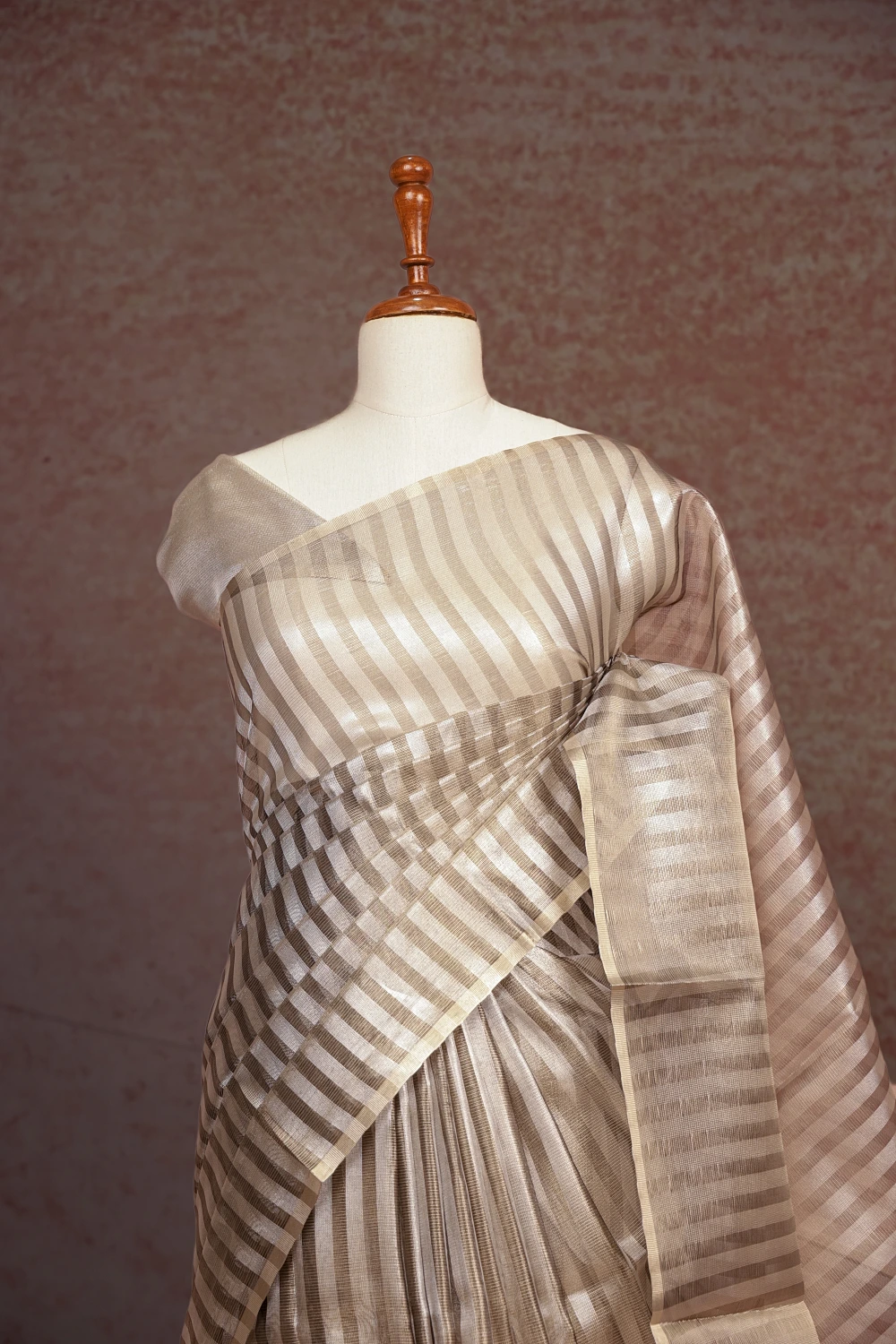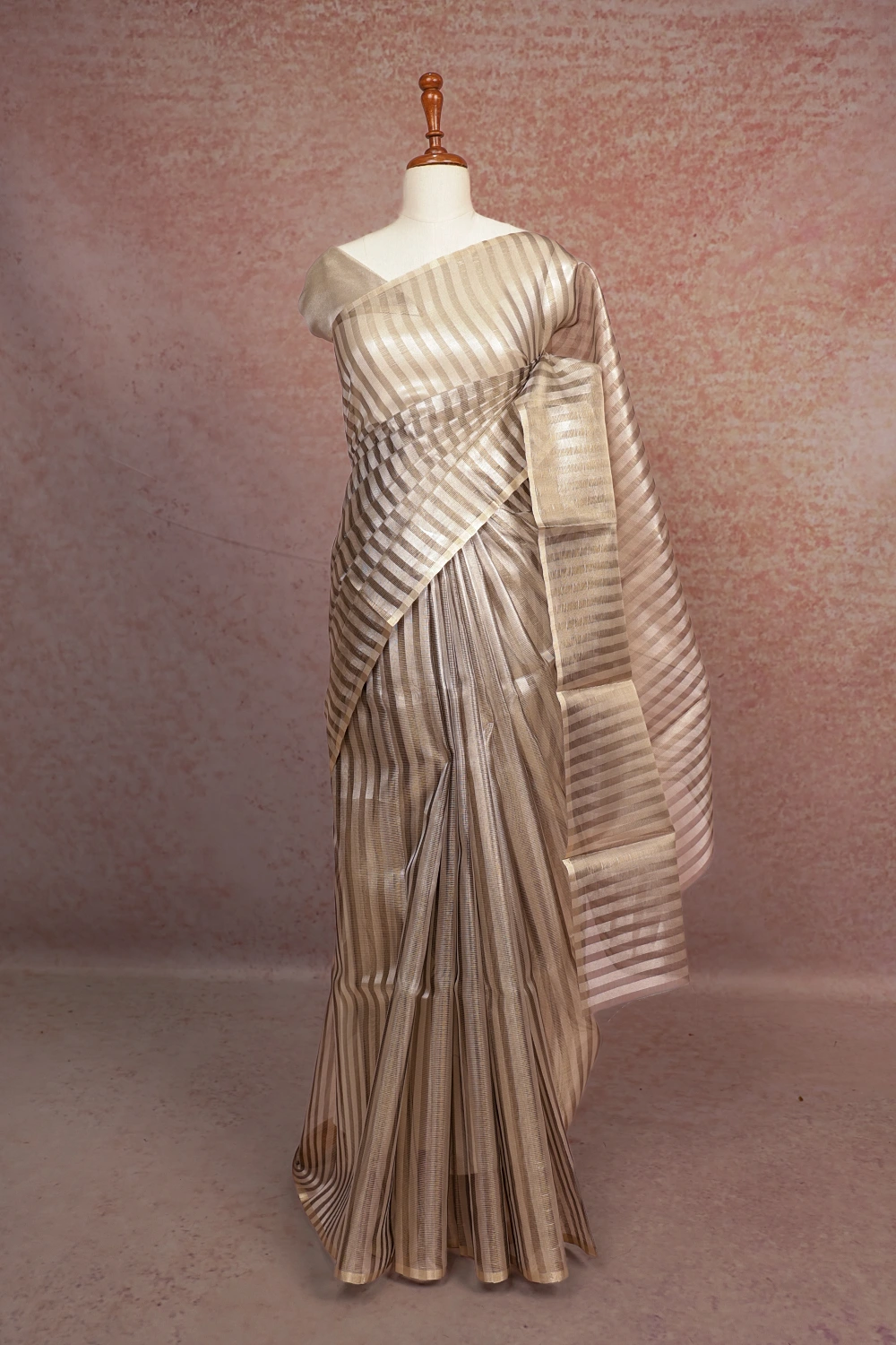 Silver Semi Tissue Lines Saree With Small Border. Includes Unstitched Blouse