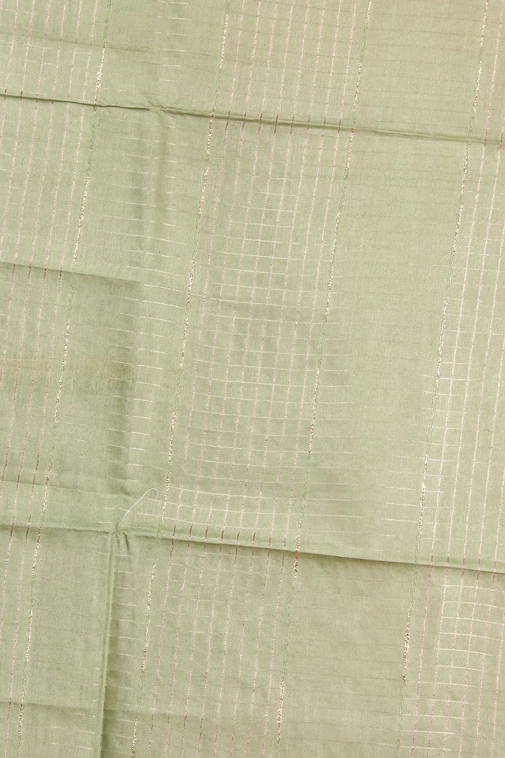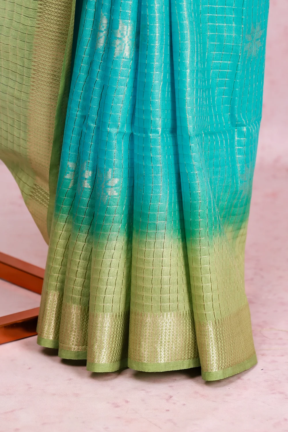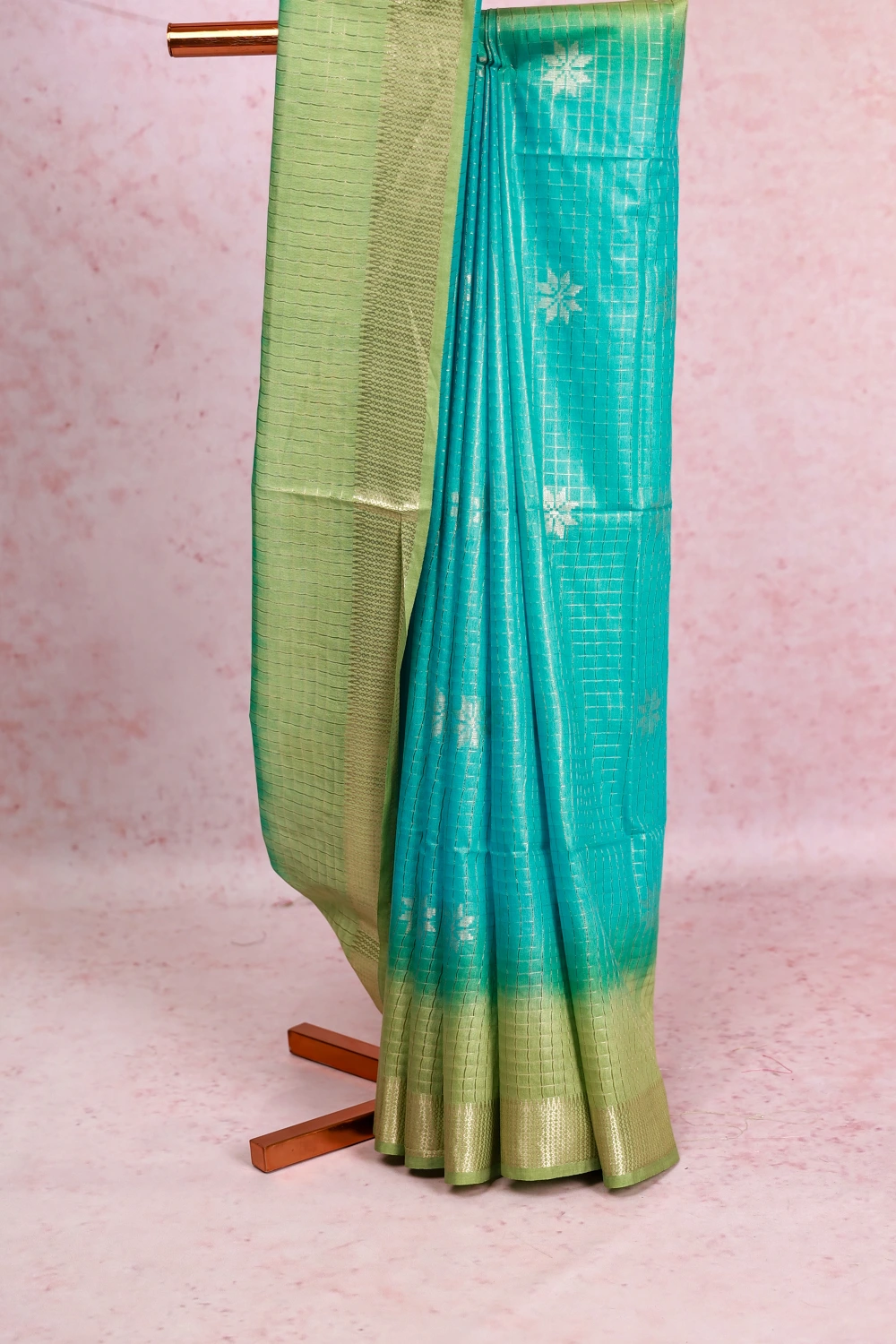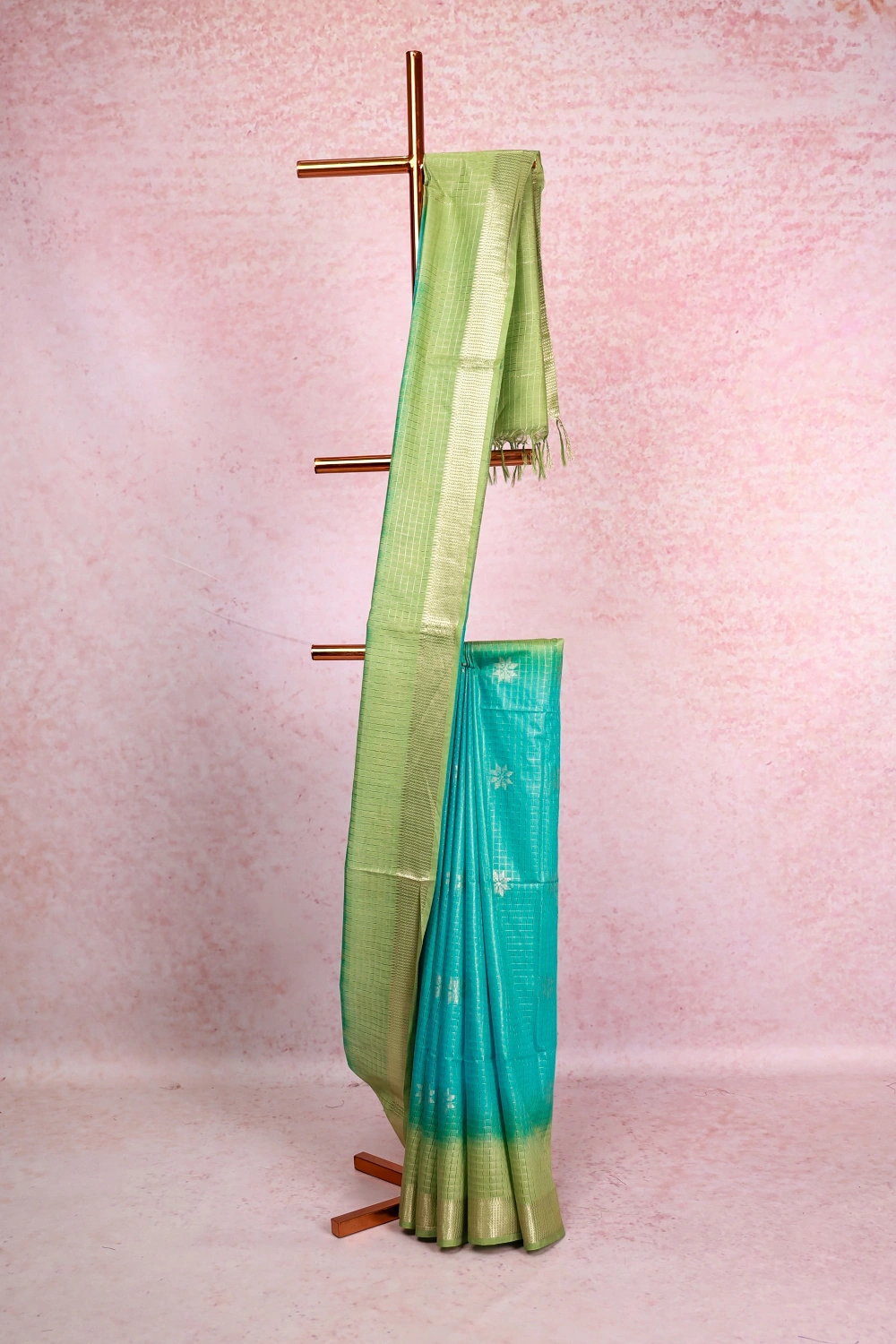 Sky Blue Semi Tussar Checks With Butta Saree With Zari Border. Includes Un Stitched Blouse