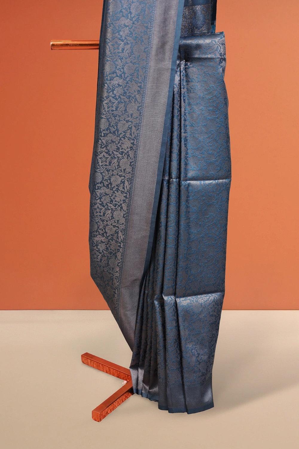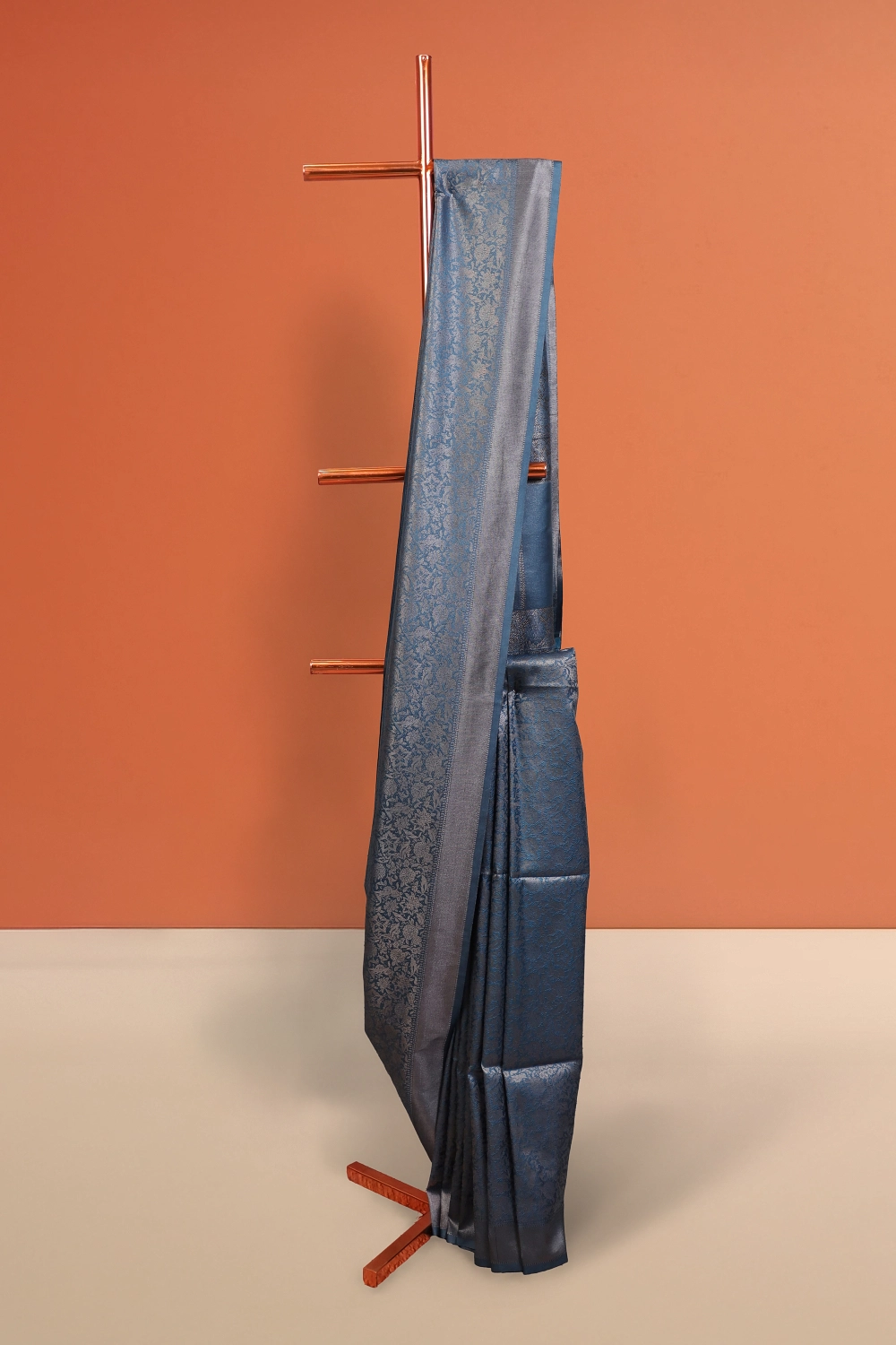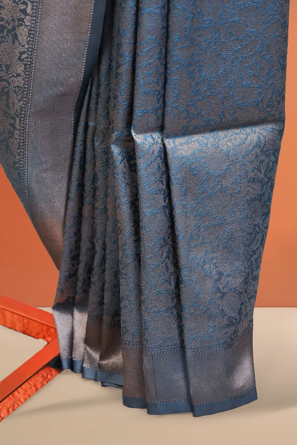 Teal Blue Jute Banarsi, Banarsi Design Saree with Designer Border. Includes Unstitched Blouse