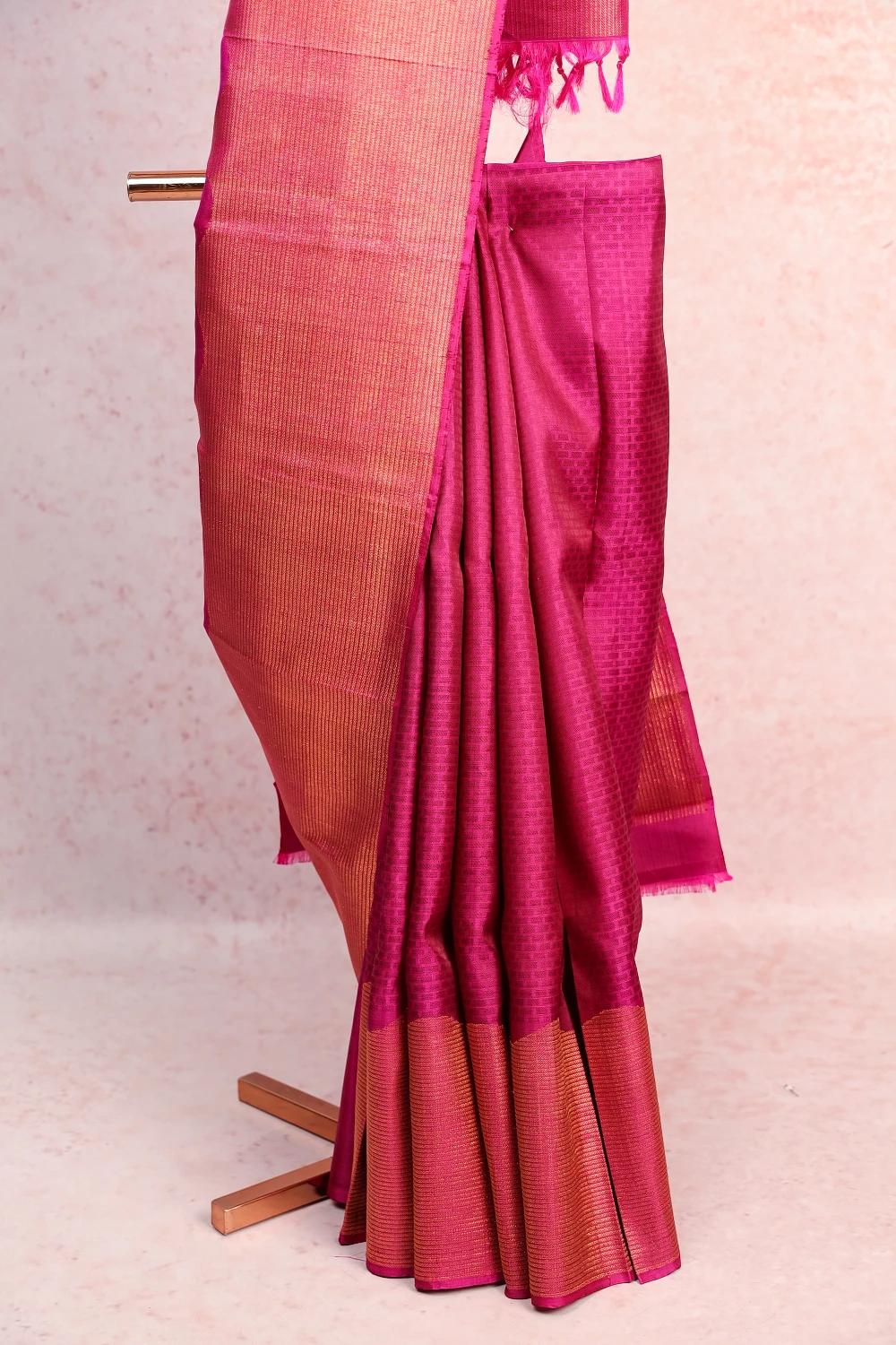 Vadamulla Kancheepuram Self Design Saree With Golden Border. Includes Un Stitched Blouse
