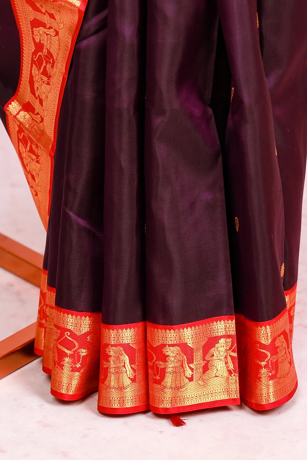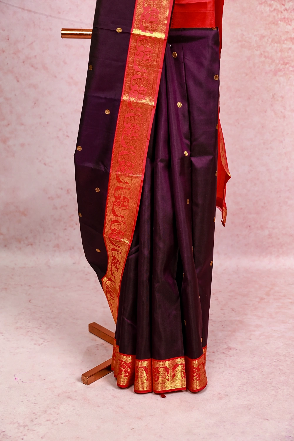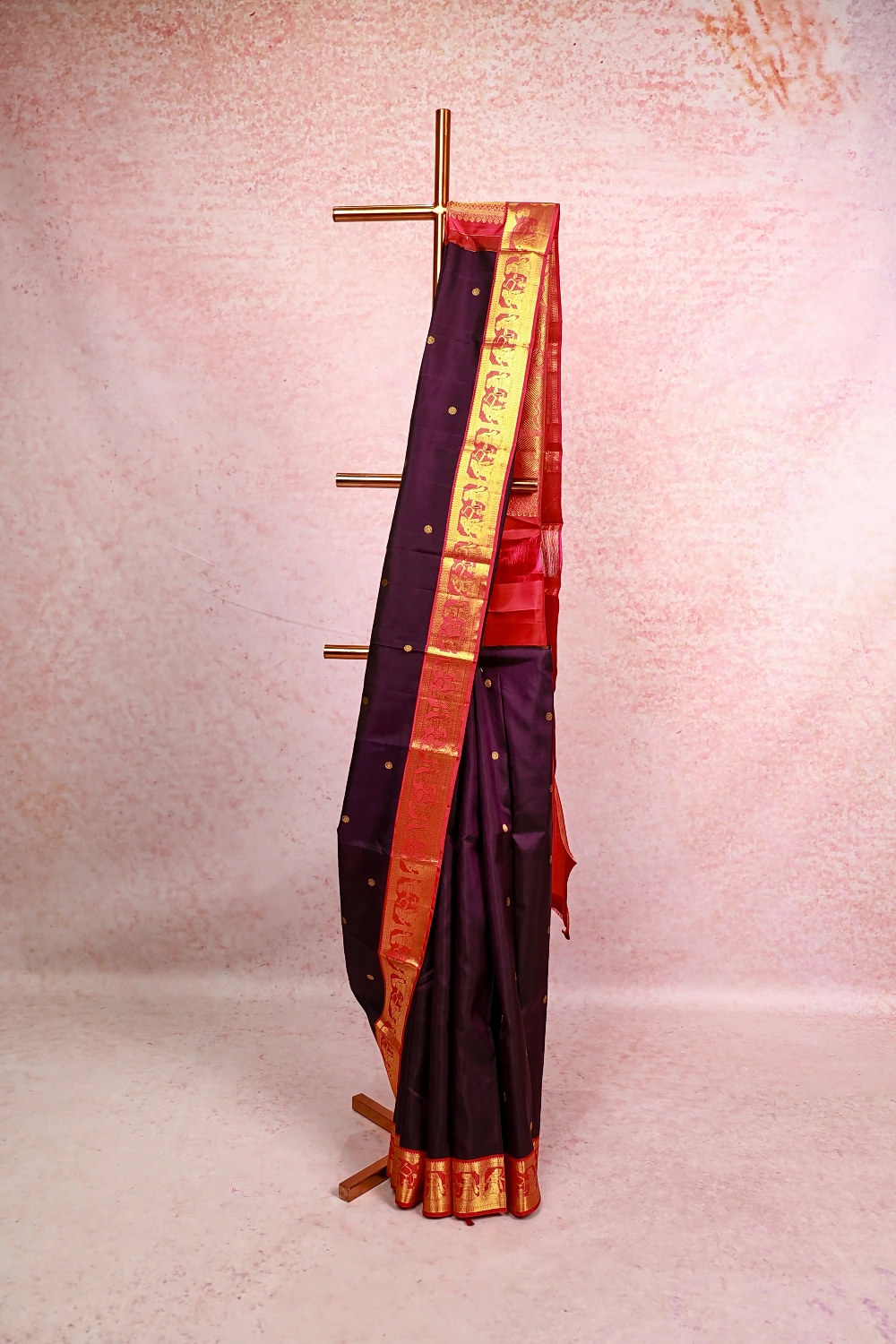Violet Kancheepuram Silk Butta Saree With Traditional Zari Border. Includes Unstitched Blouse
