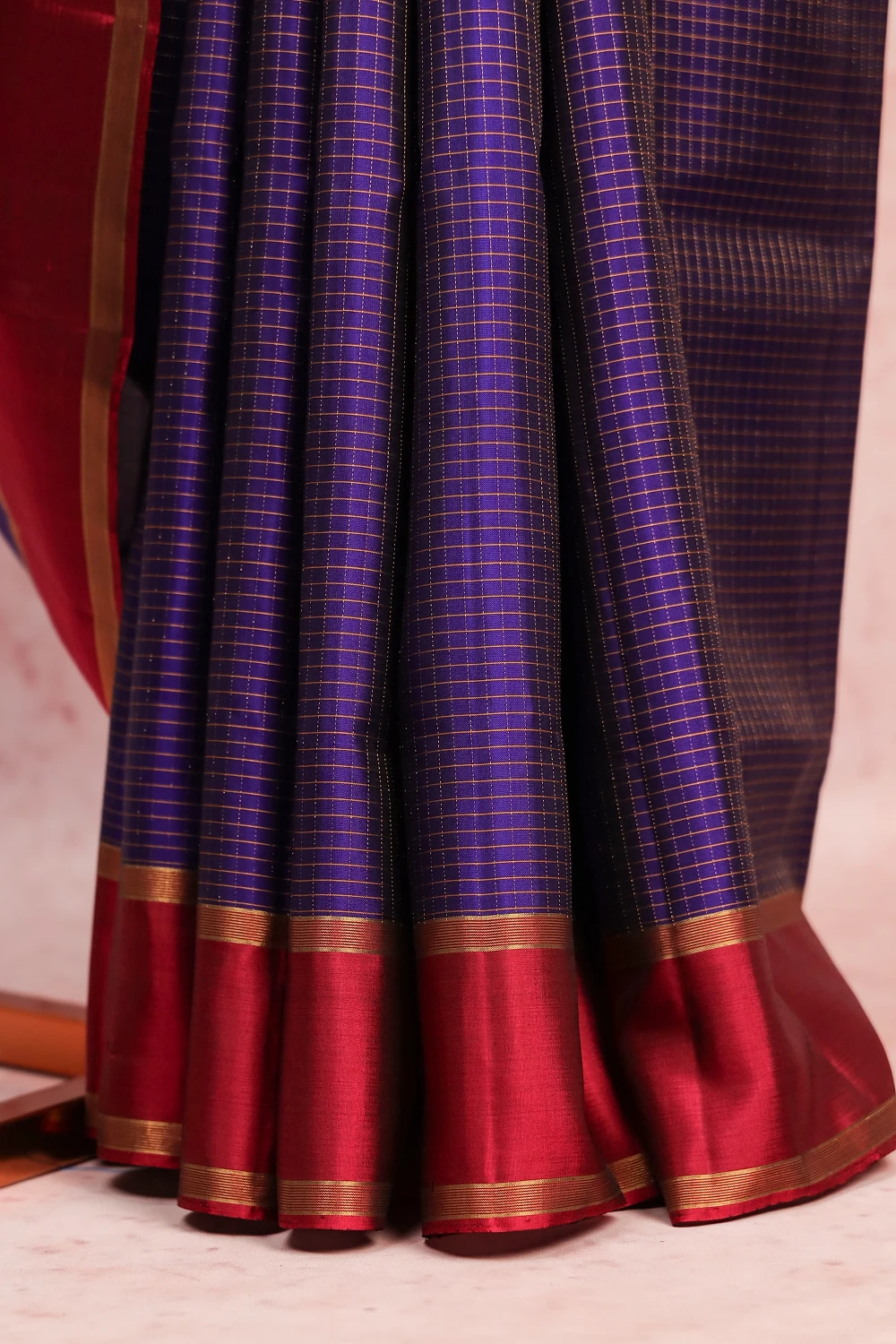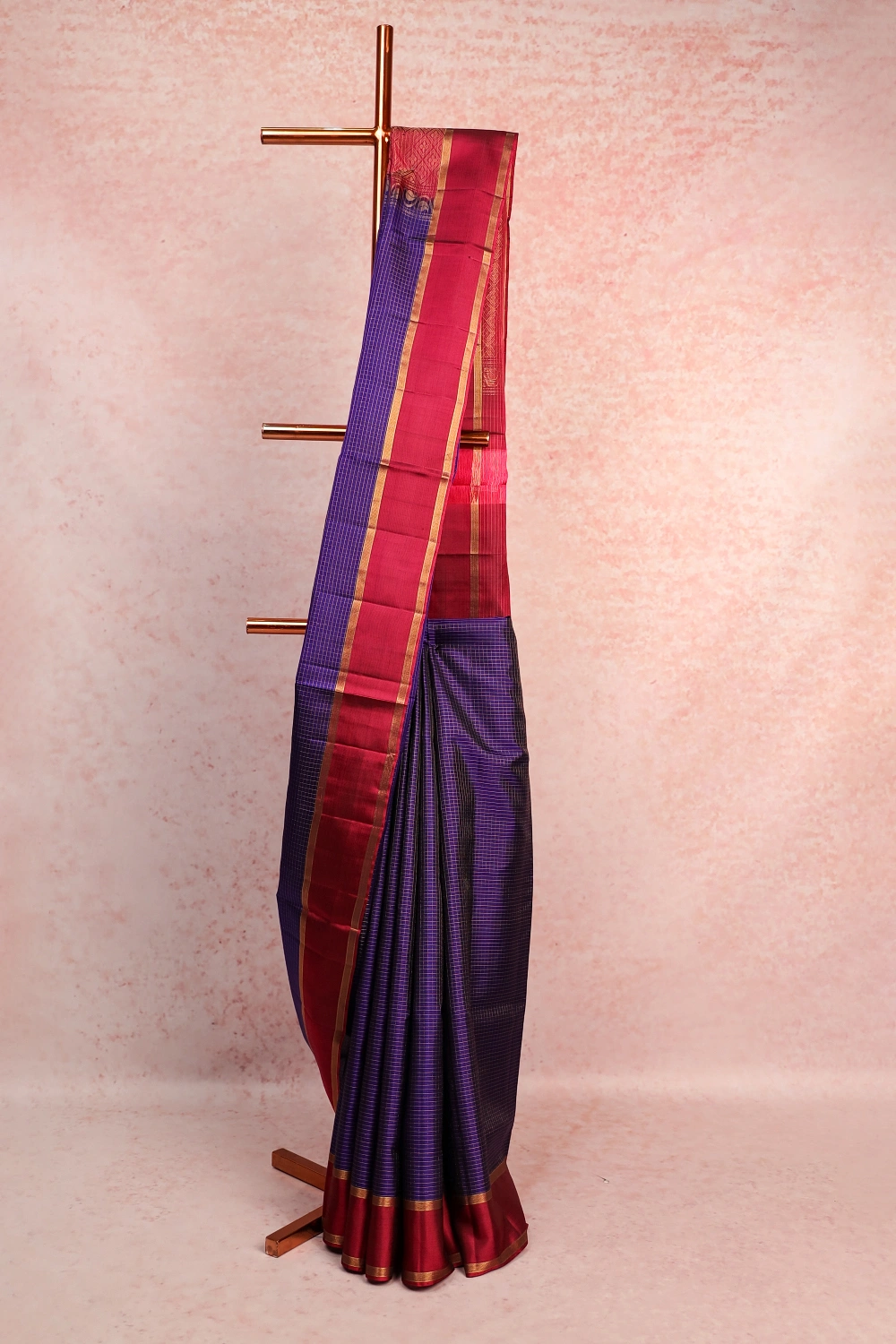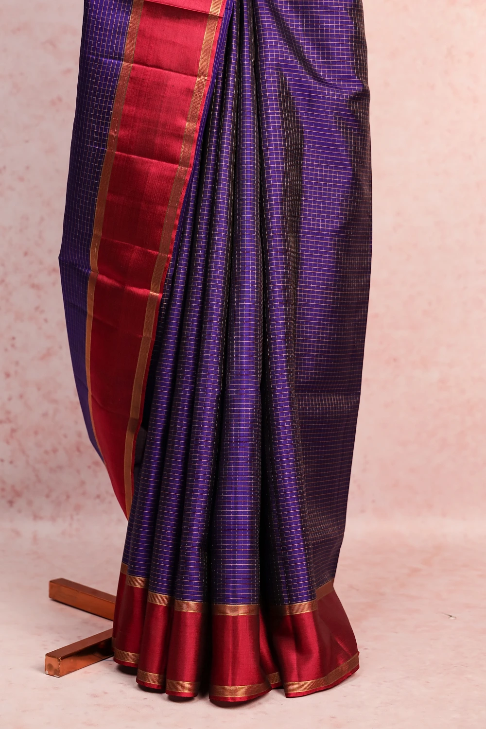 Violet Kancheepuram Soft Silk Checks Saree with Plain Border. Includes Unstitched Blouse