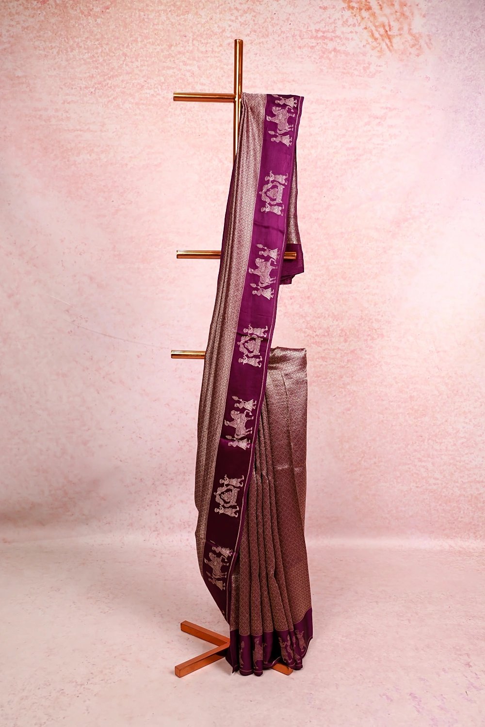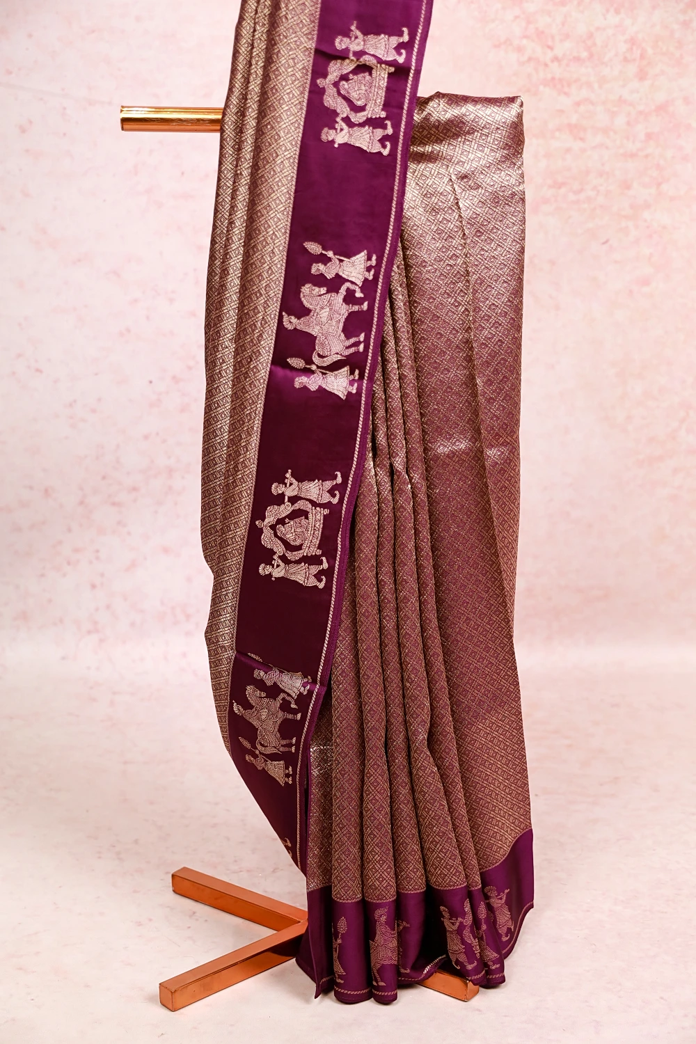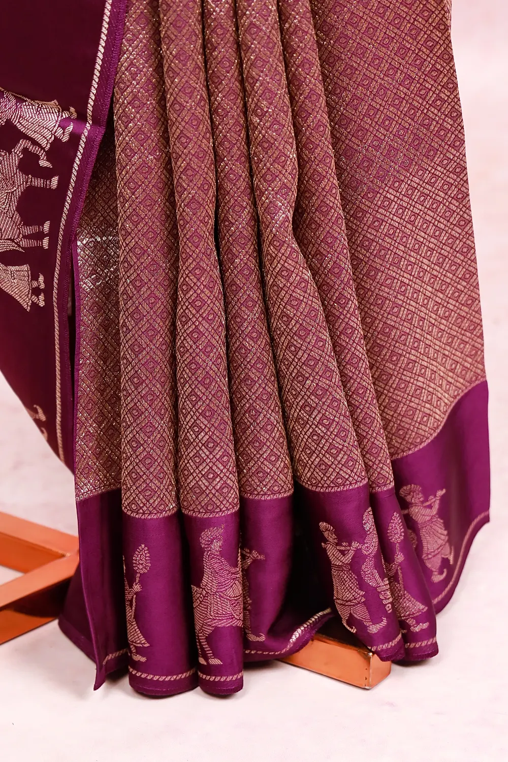 VIolet Satin Silk Brocade Saree With Plain Border. Includes Unstitched Blouse