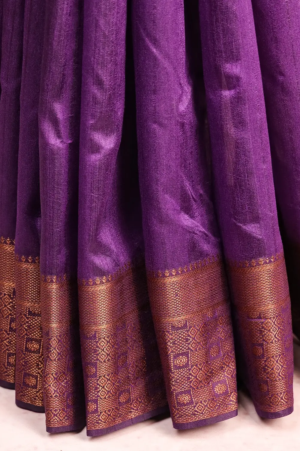 Violet Semi Jute Plain Body with Designer Border. Includes Un stitched Blouse