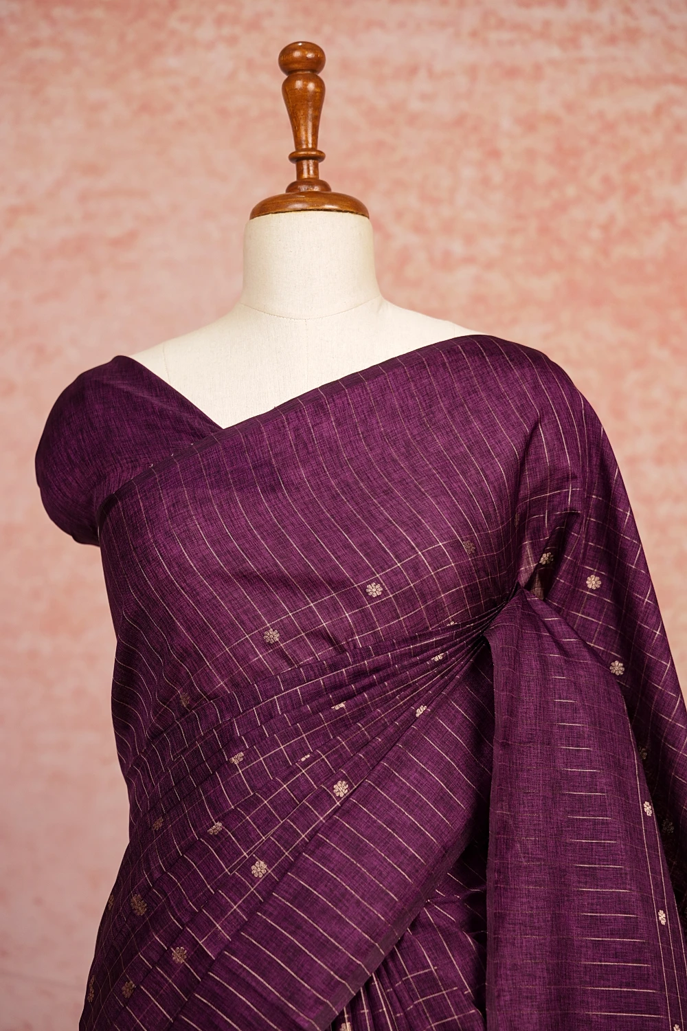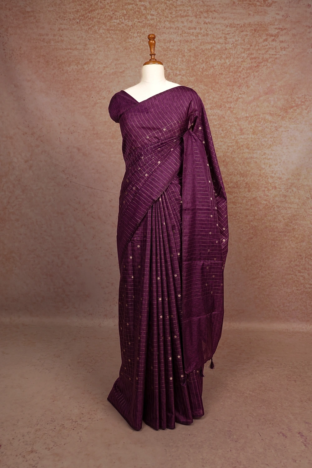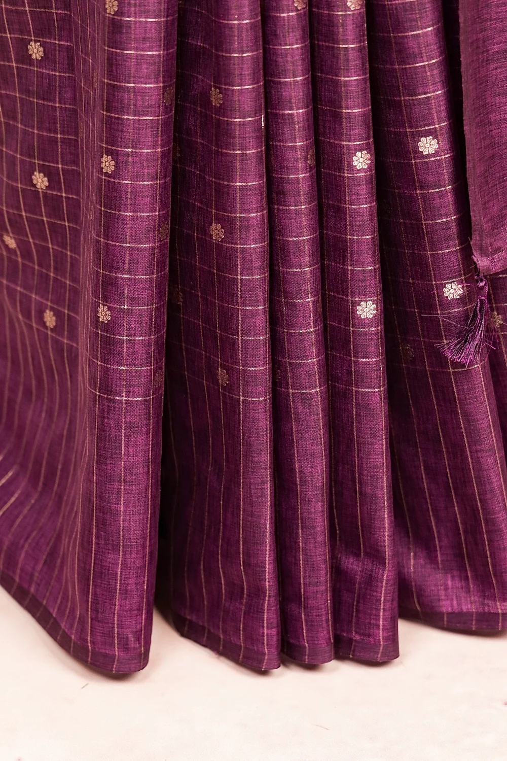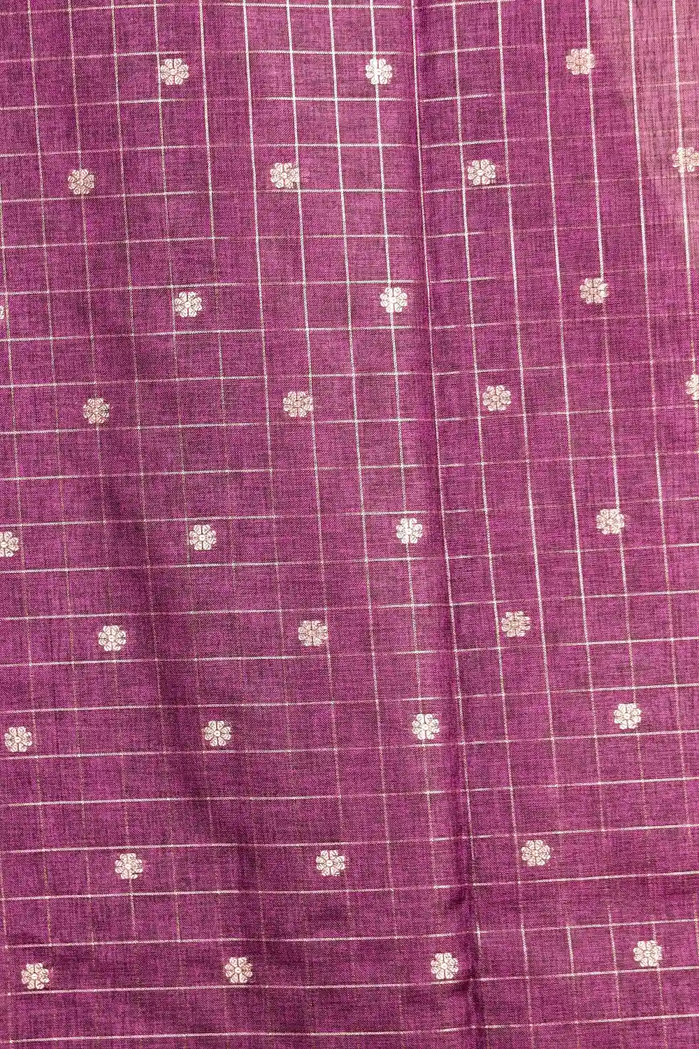 Violet Semi Silk Checks With Butta Design Saree With Line Border. Includes Unstitched Blouse