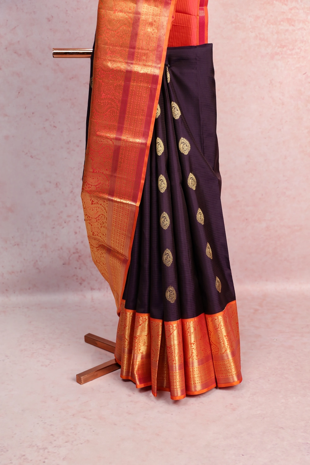 Violet Traditional Kancheepuram Soft Silk Butta Saree with Designer Border. Includes Unstitched Blouse