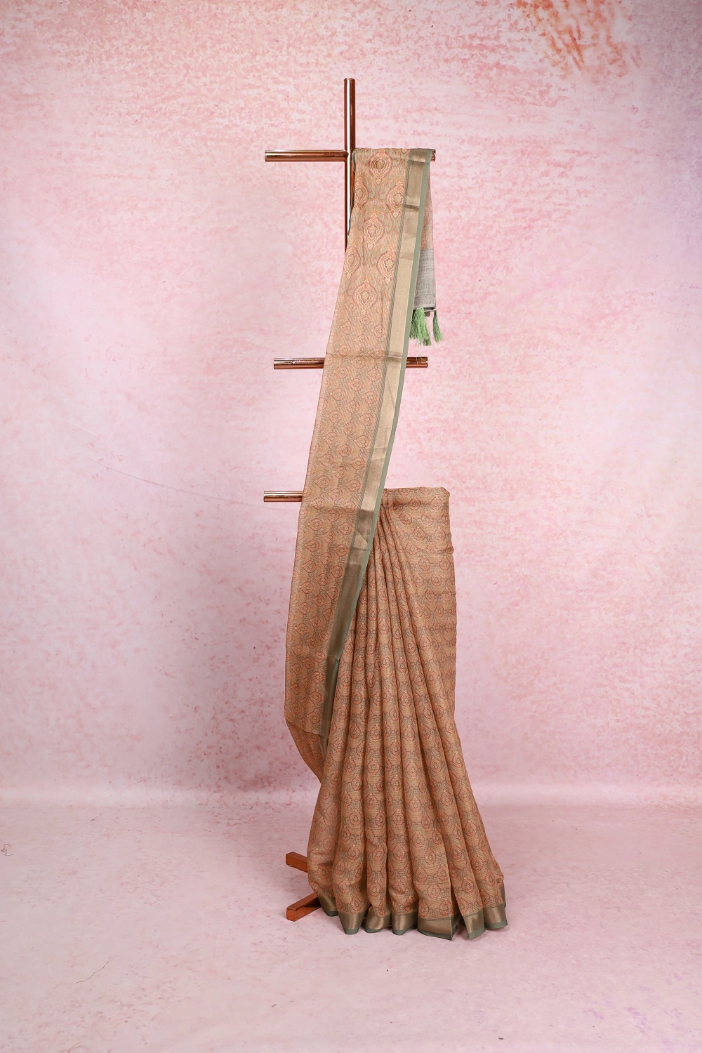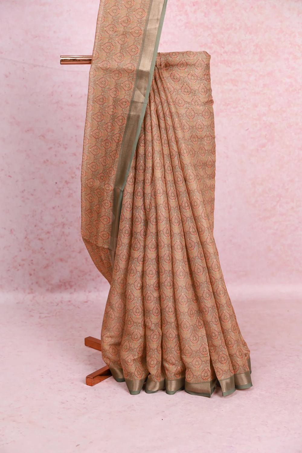 Viridian Chiffon Printed Saree with Small Border. Includes Unstitched Blouse
