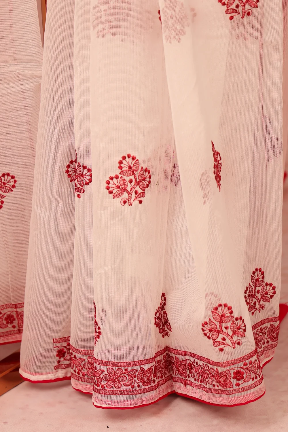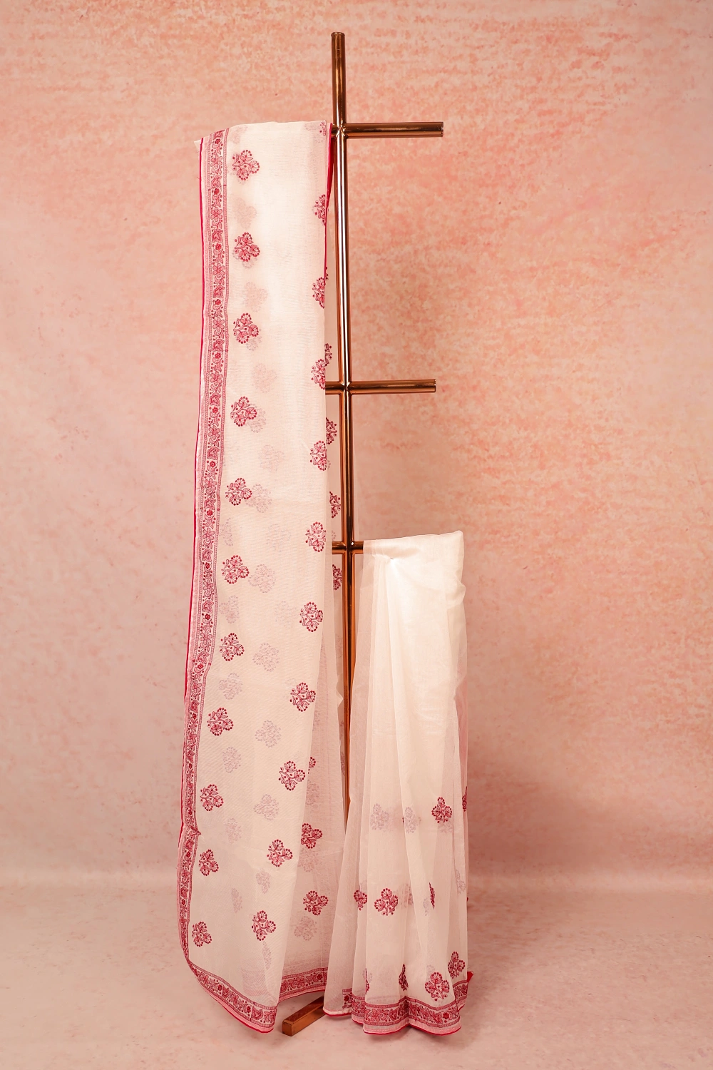 White Kota Designer Butta Saree with Thread border. Includes Unstitched Blouse