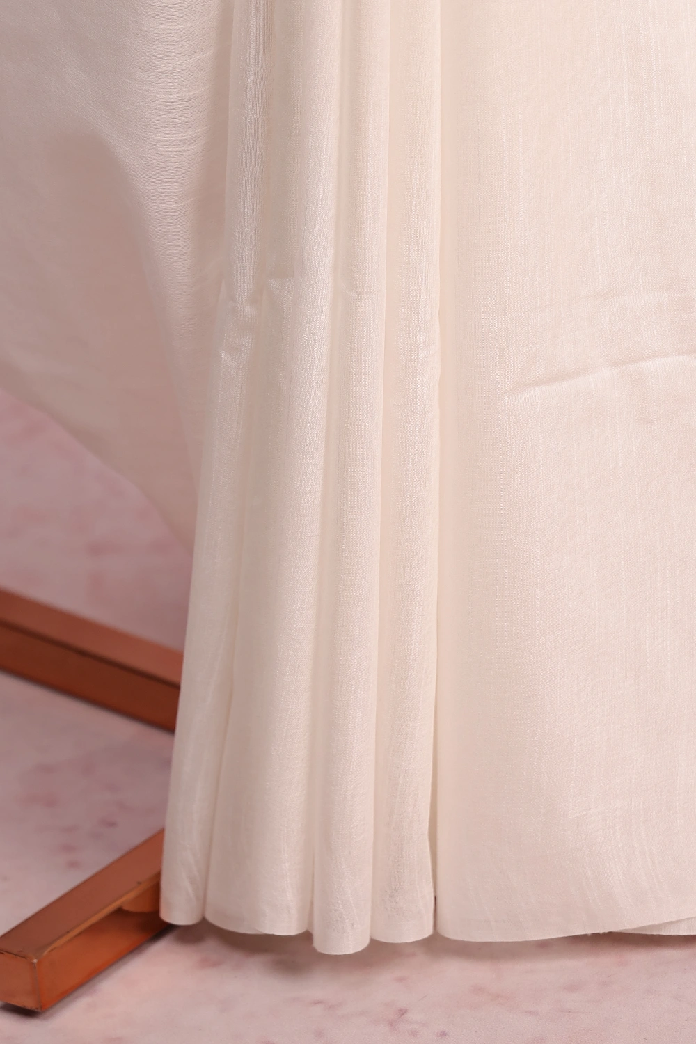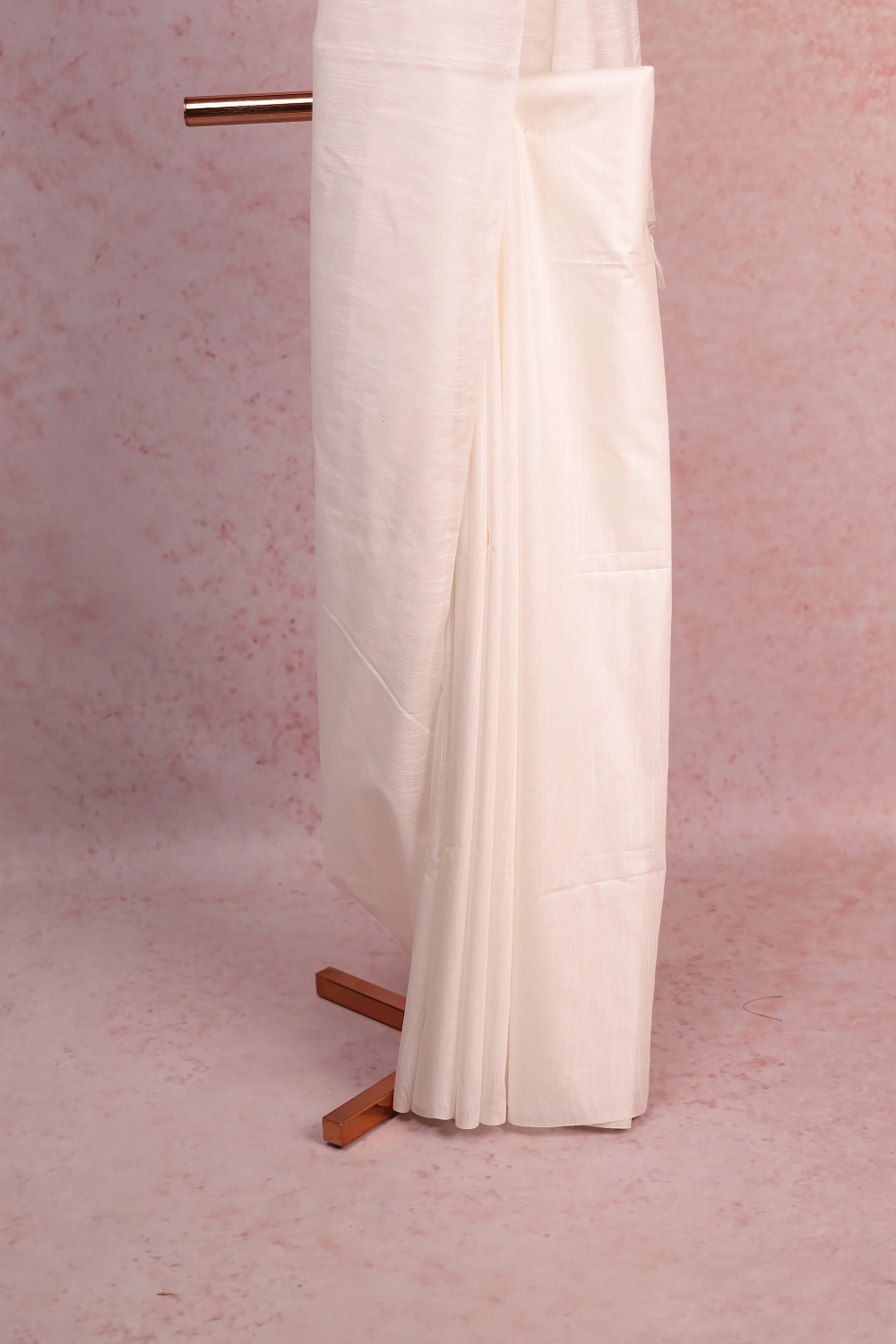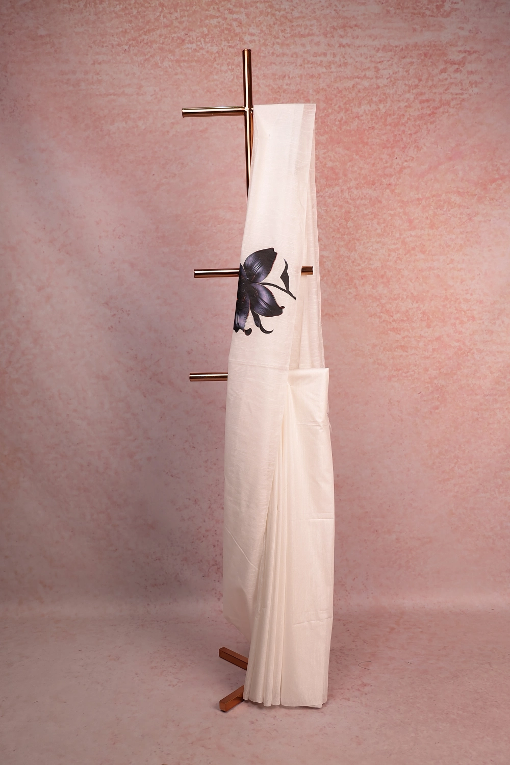 White Semi Tussar Printed Saree with Without Border. Includes Un stitched Blouse