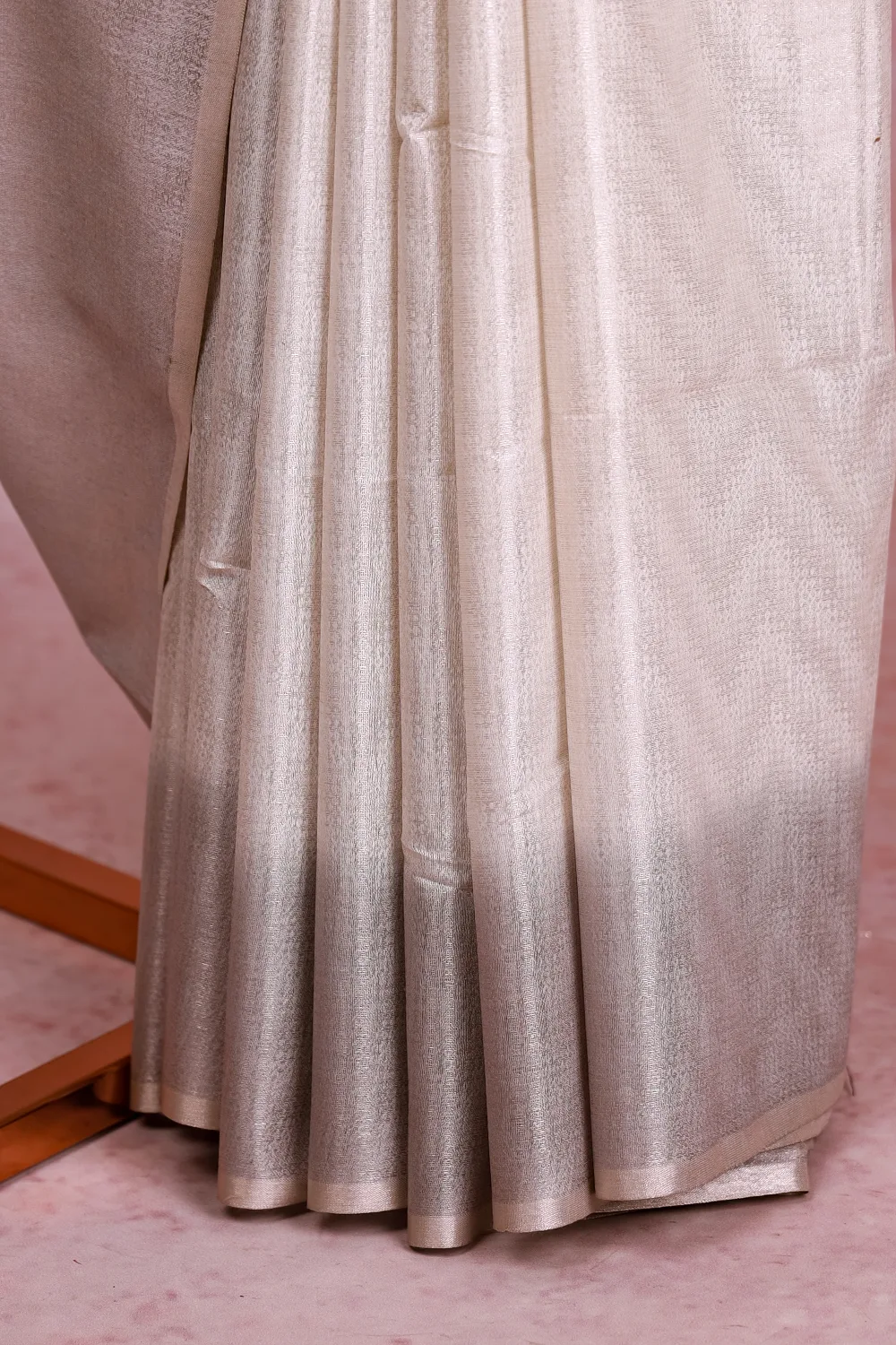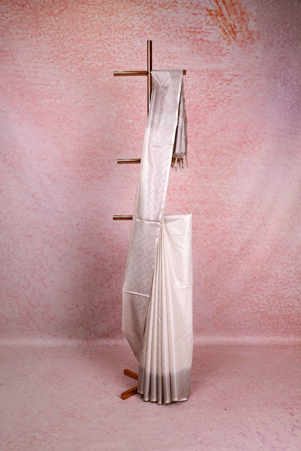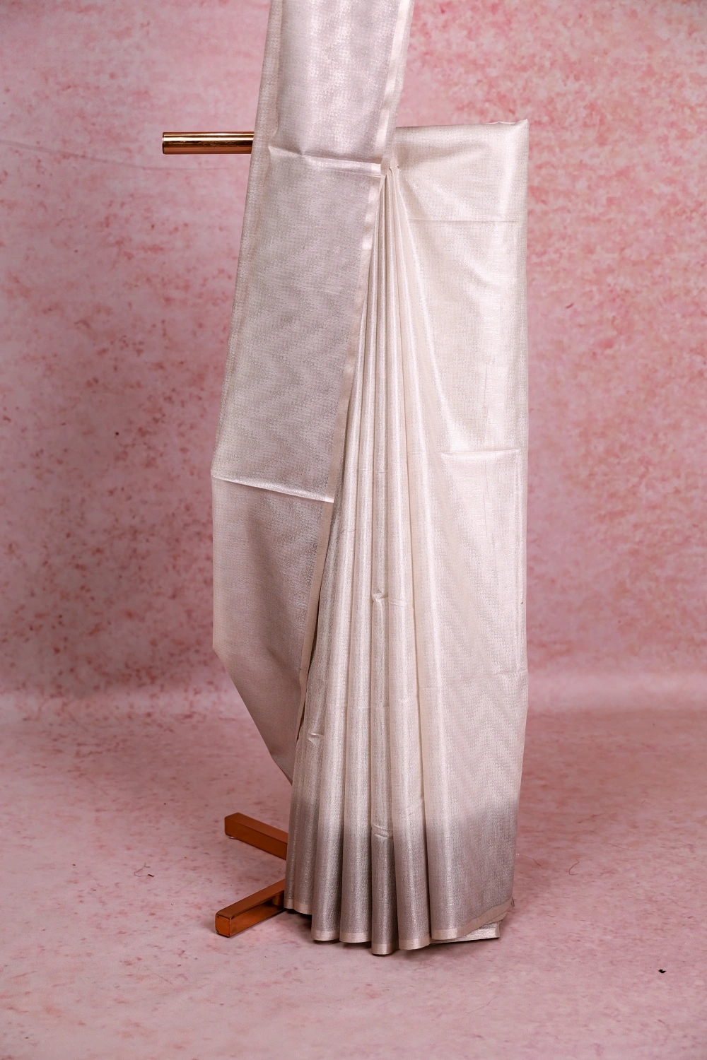 White Colour Semi Tussar Zari Work Saree With Zari Border. Includes Unstitched Blouse