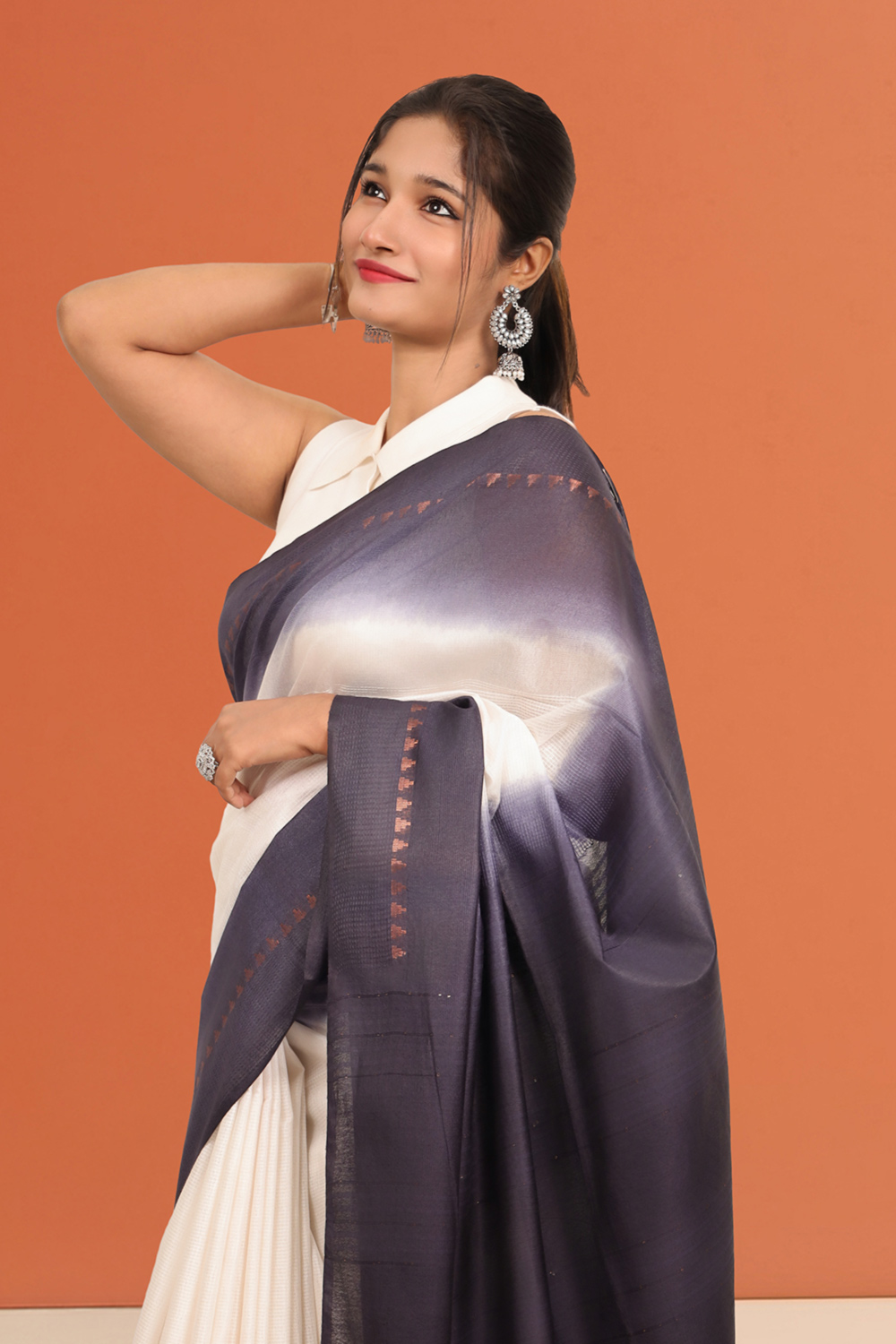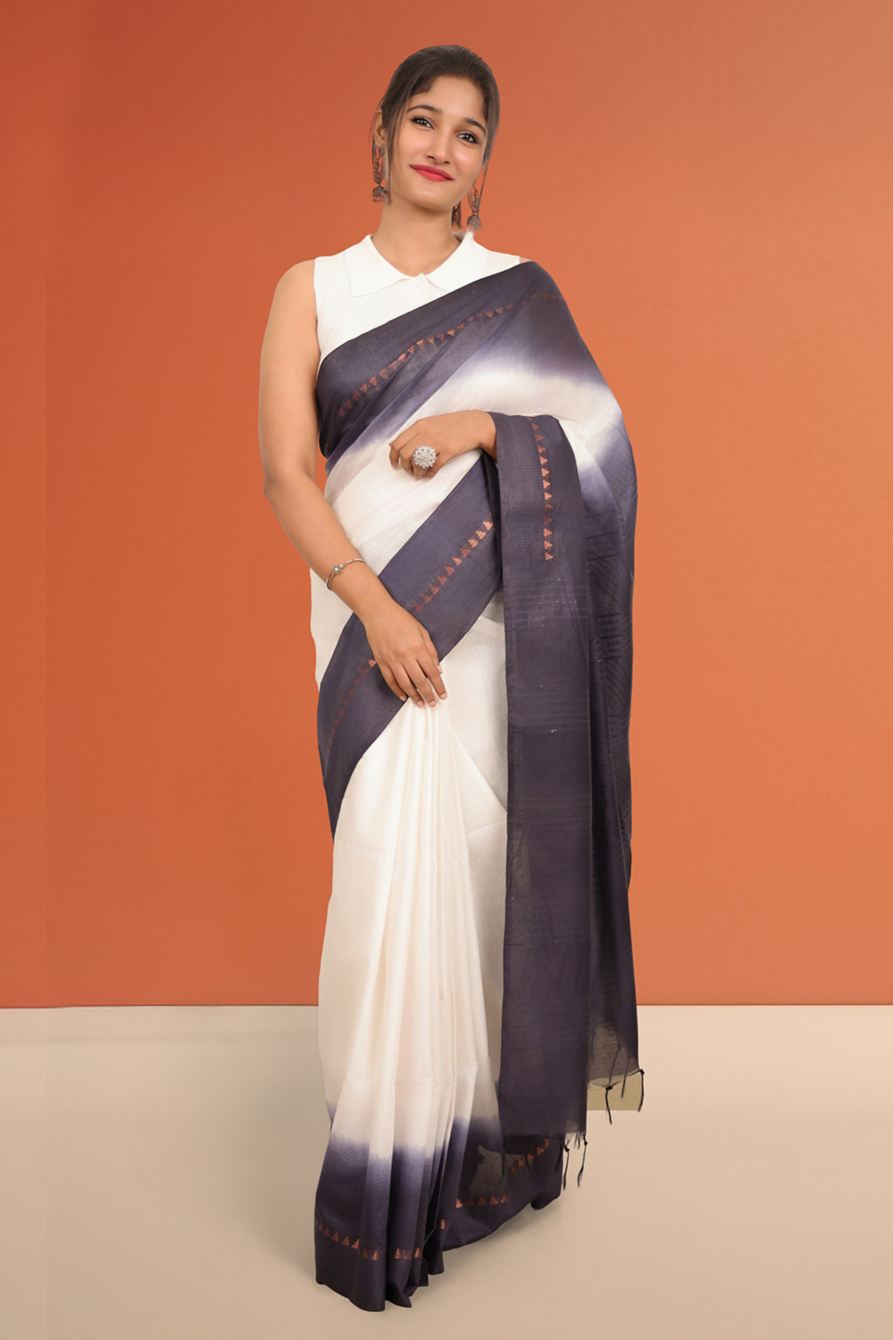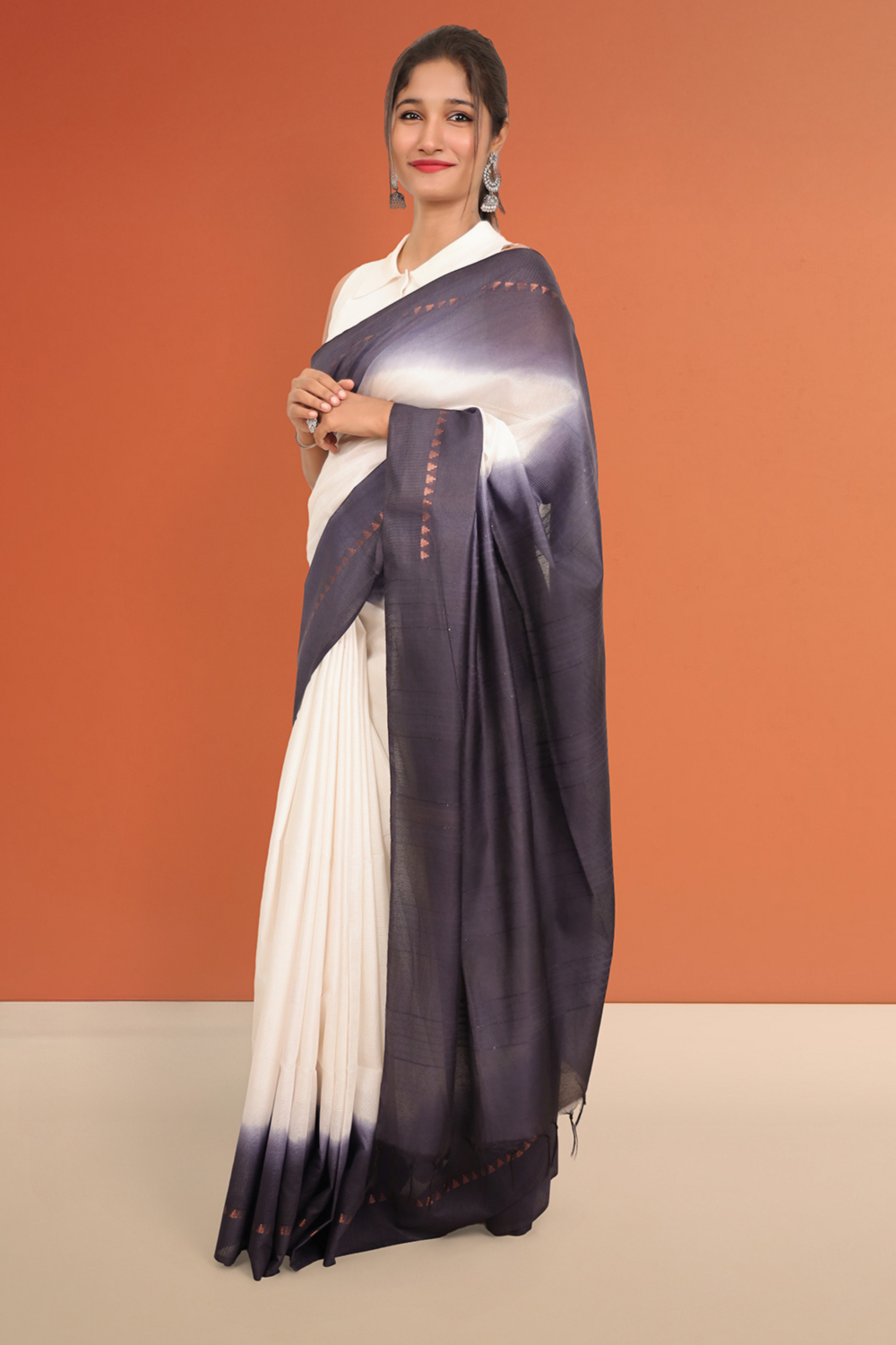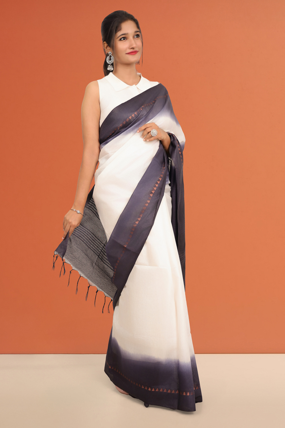 White Semi Tussar Saree