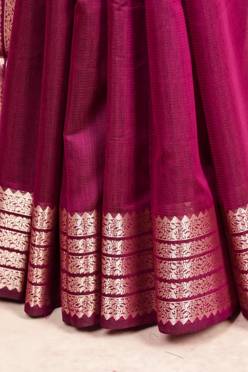 Wine Cotton Silk Plain Butta With Designer Border. Includes Unstitched Blouse