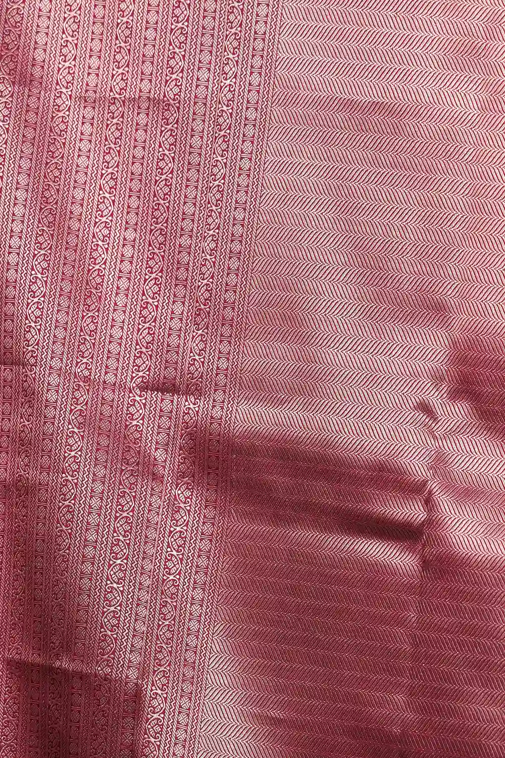 Wine Kancheepuram Silk Brocade Saree with Designer Border. Includes Unstitched Blouse