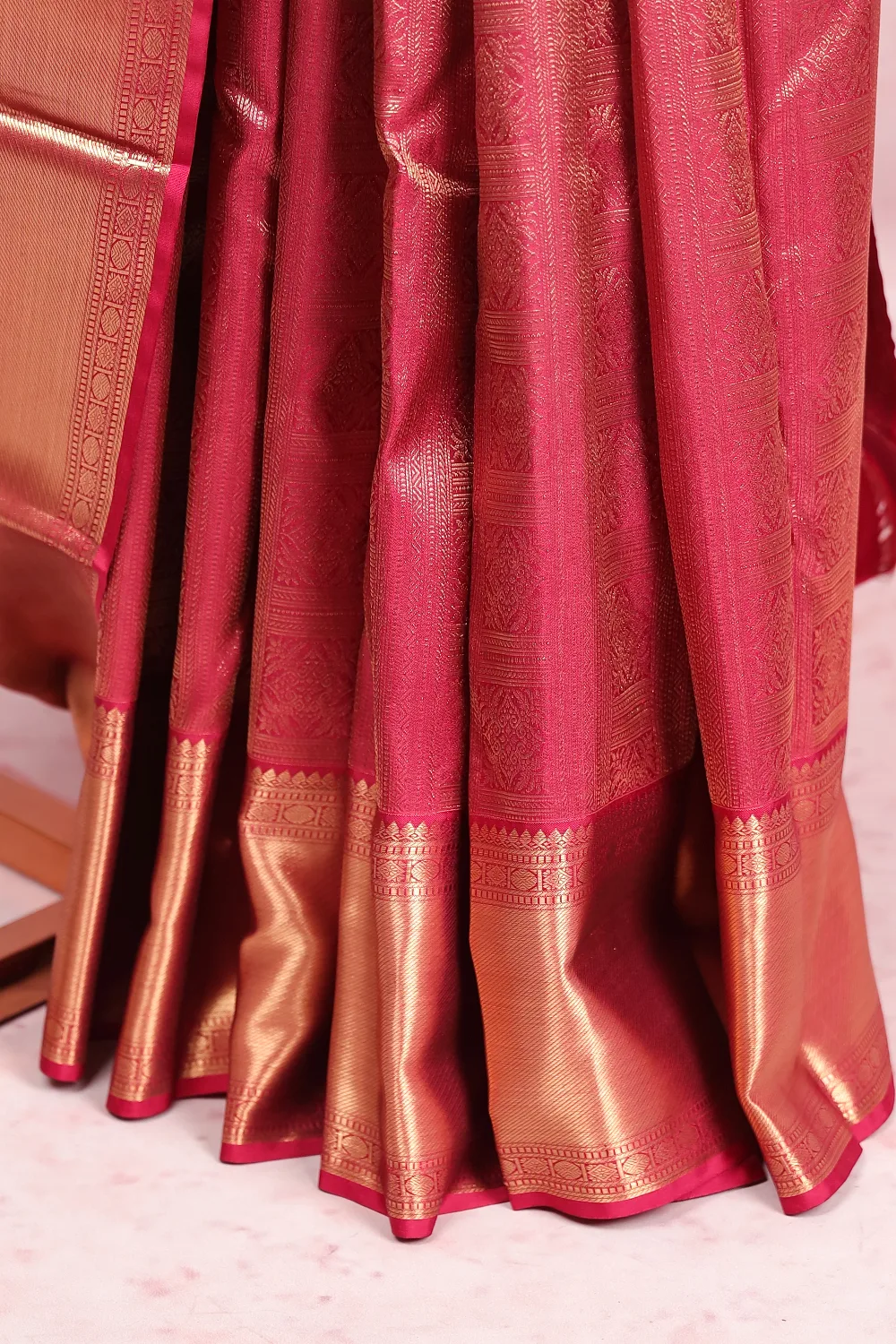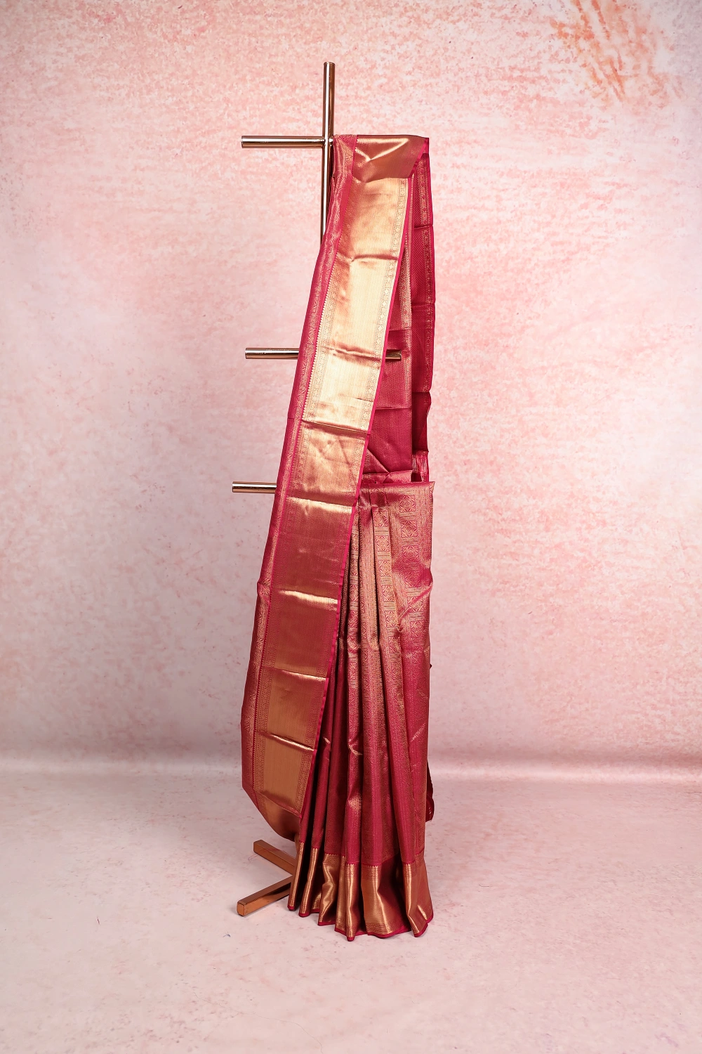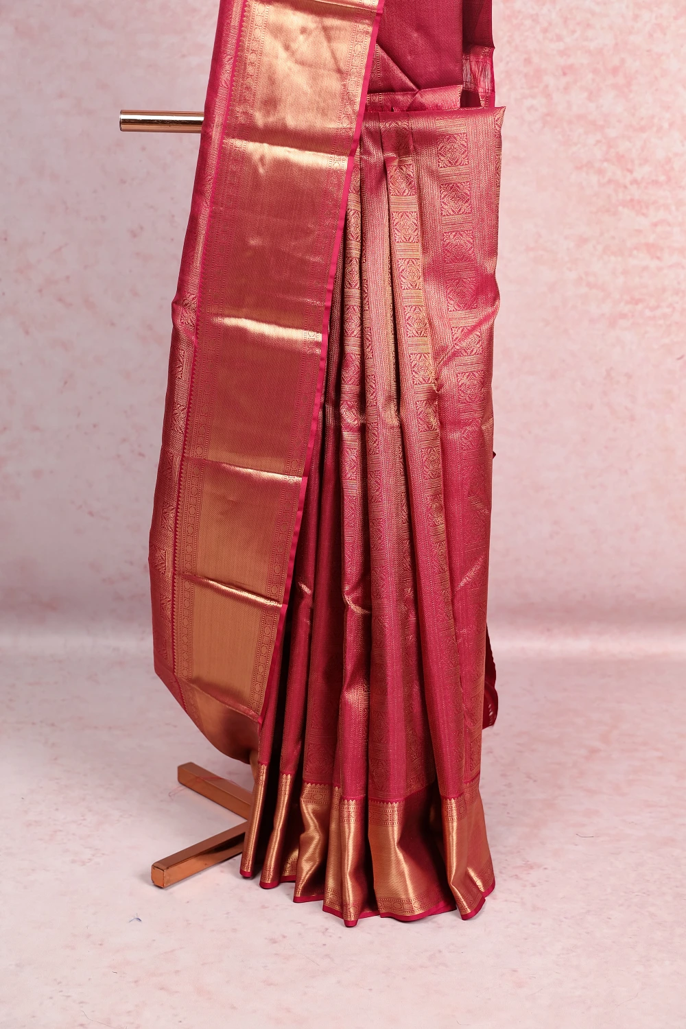 Wine Kancheepuram Brocade Saree With Plain Border. Includes Un Stitched Blouse