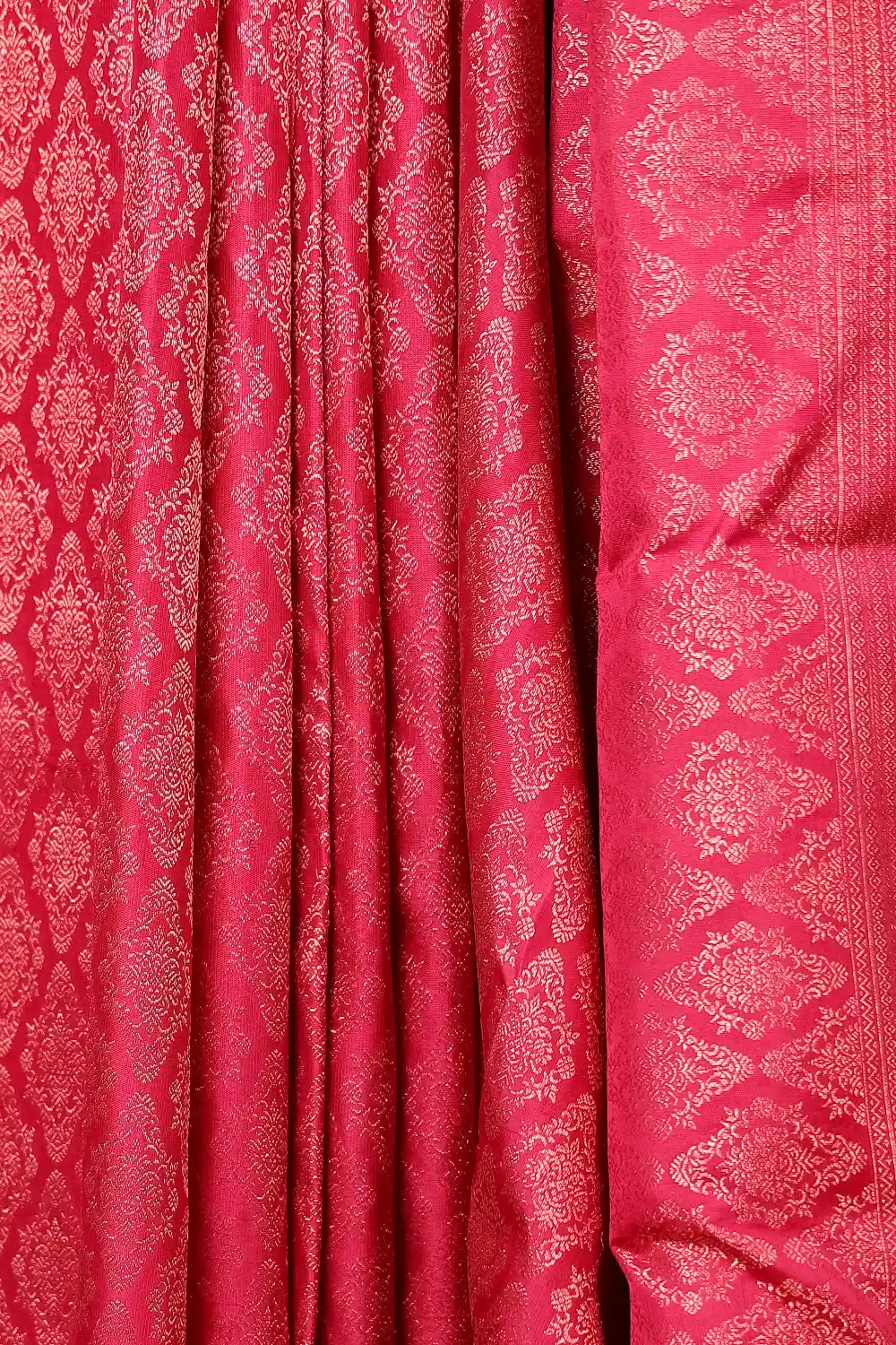Wine Kancheepuram Silk Brocade Saree with Designer border. Includes Unstitched Blouse