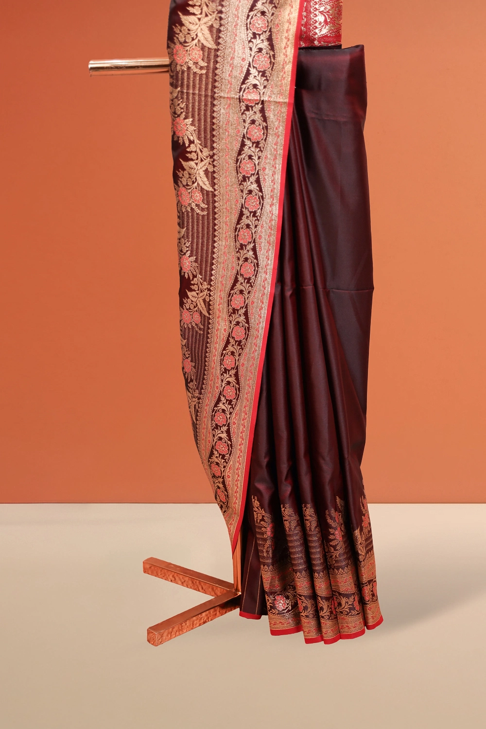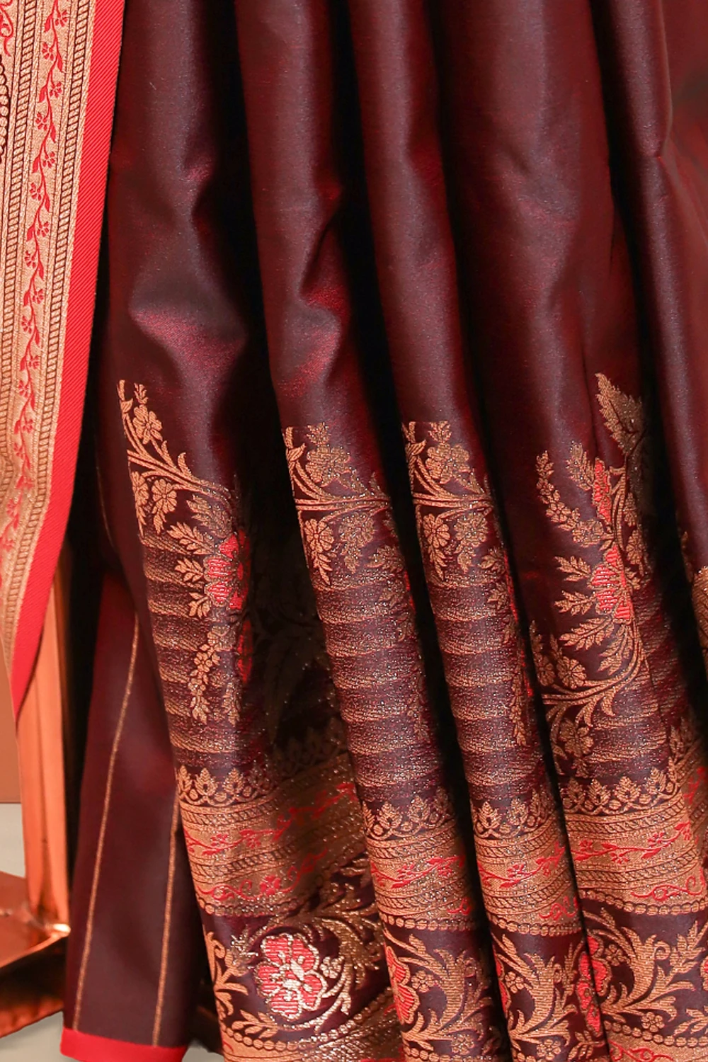 Wine Red Crepe Saree