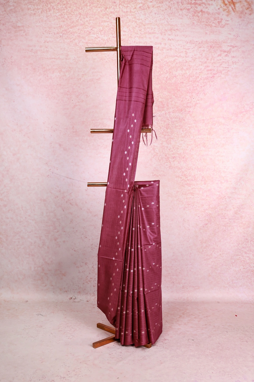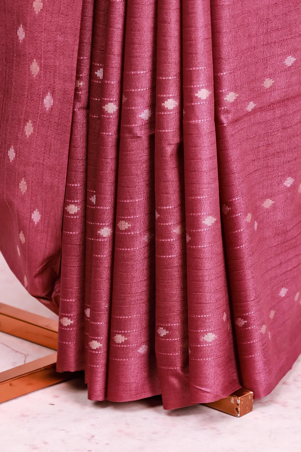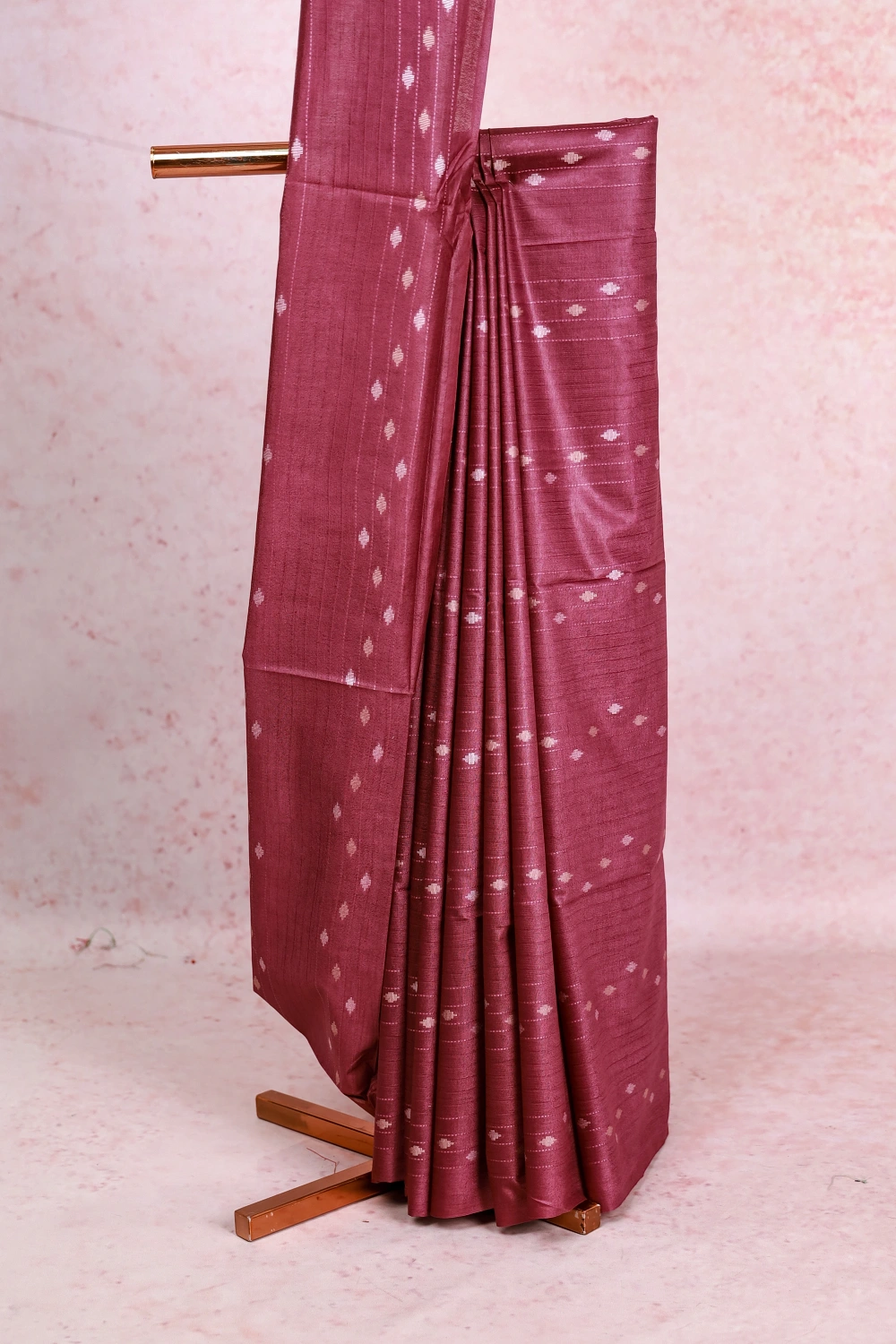 Wine Tussar Tissue Lines With Butta Saree Without Border. Includes Un Stitched Blouse