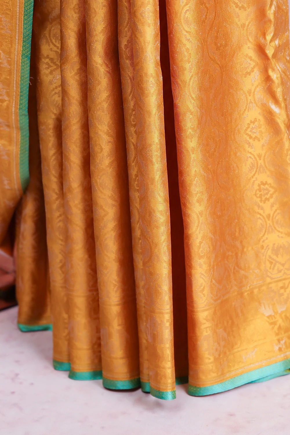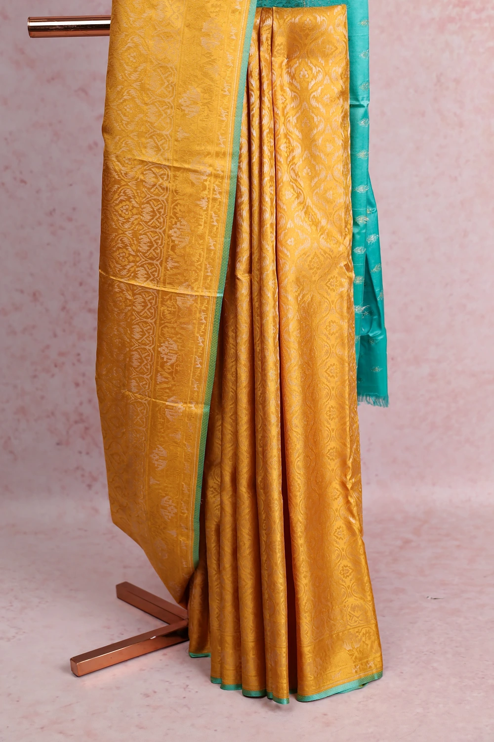 Yellow Kancheepuram Silk Brocade Saree With Without Border. Includes Un Stitched Blouse